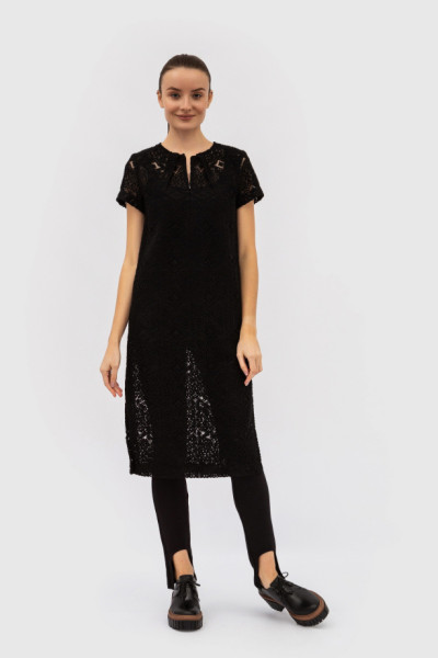 Стильное ажурное черное платье-туника, полупрозрачное, без подклада.