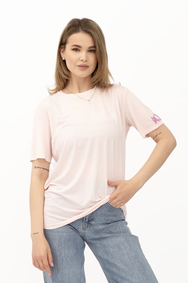 Рожева трикотажна футболка вільного крою з круглою горловиною Такка 02 - з відмінним співвідношенням ціни та якості