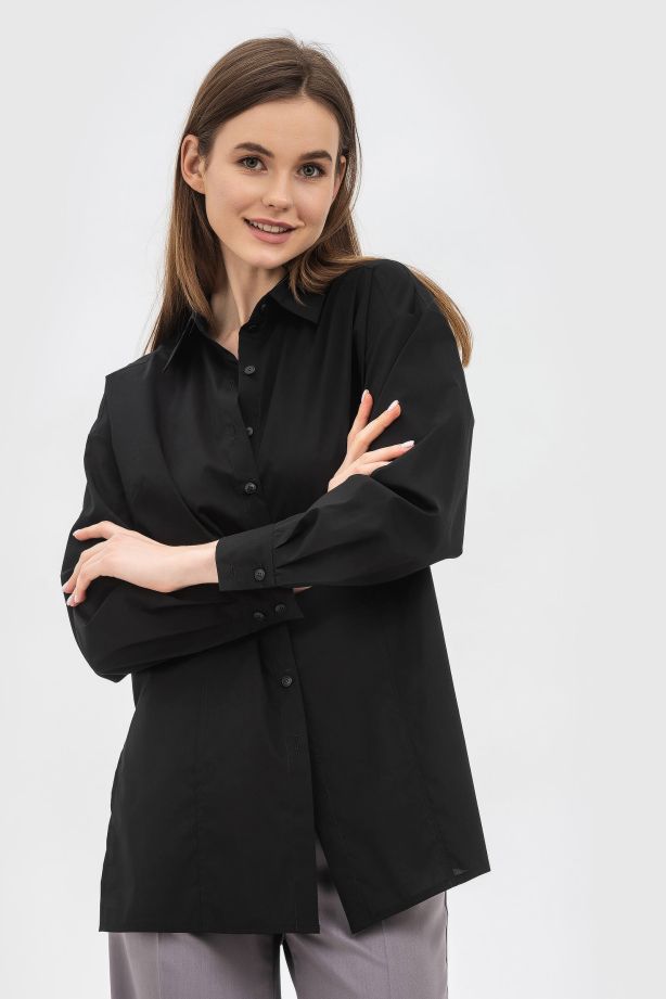 Вільна чорна блуза з натуральної тканини для жінок Лорето 01 - будьте в тренді кожного дня