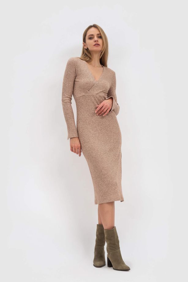 Сукня трикотажна з меланжевої тканин бежева Ідофєя - ваш секрет елегантності