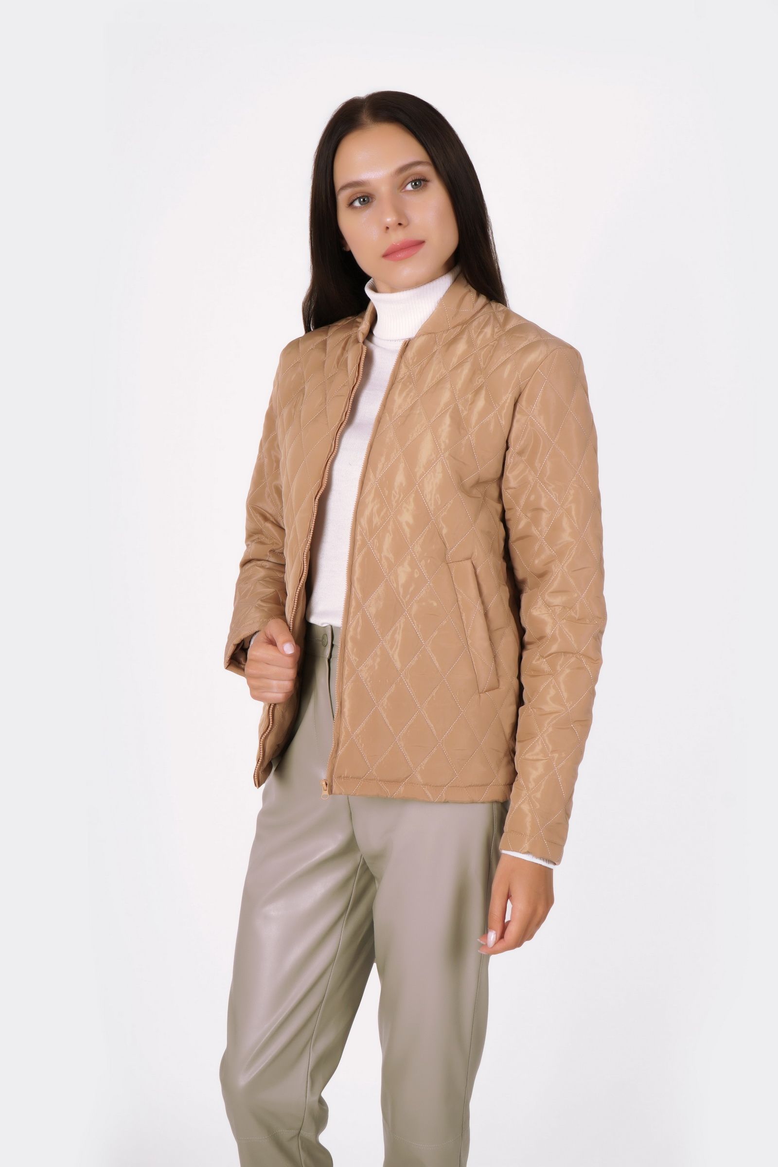 Стильна жіноча куртка зі стьобаної тканини молочного відтінку Астея 02 - з високоякісних матеріалів