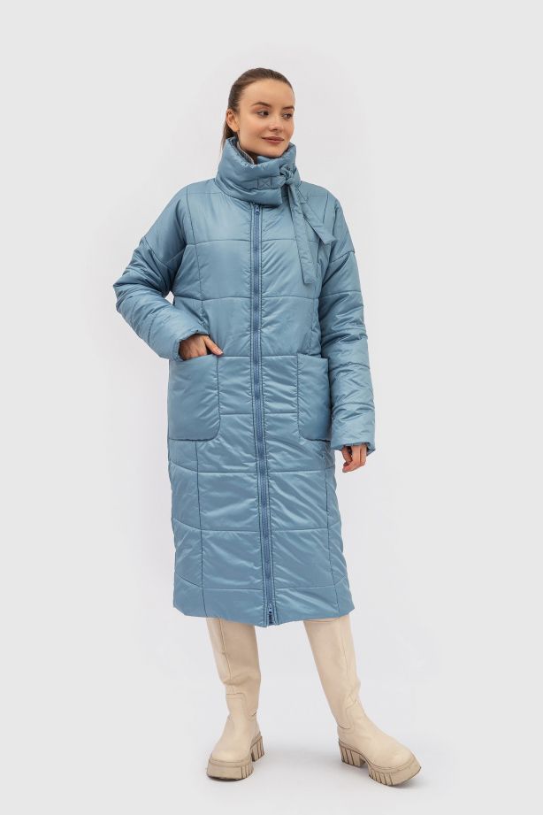 Осіннє зимове пальто блакитне зі стьобаної тканини з комірцем стійкою Ладре 01 - для будь-якої події та сезону