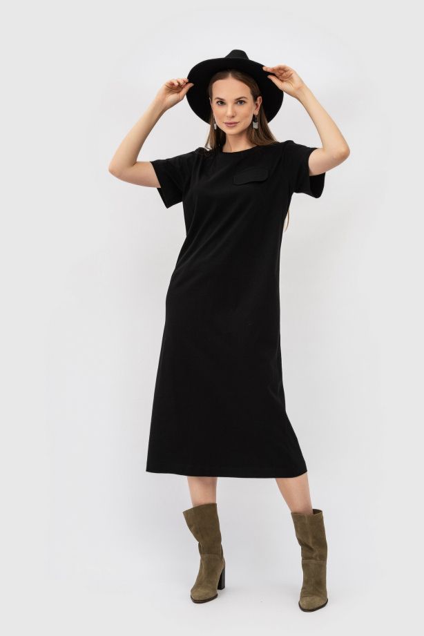 Трикотажна чорна пряма сукня з коротким рукавом Зоє - для всіх випадків життя