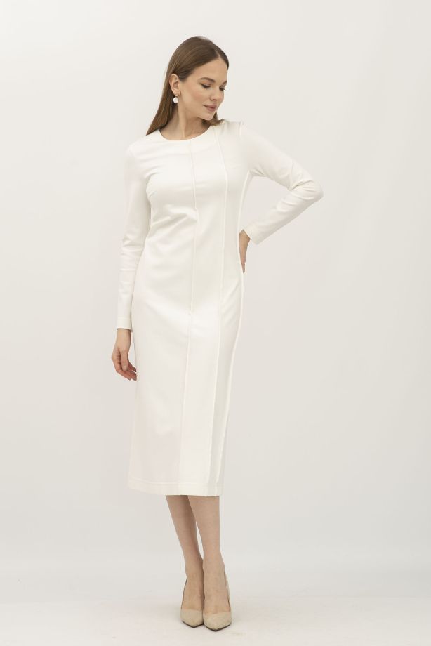Молочна трикотажна сукня довжини міді Дарен - для вашої щоденної краси