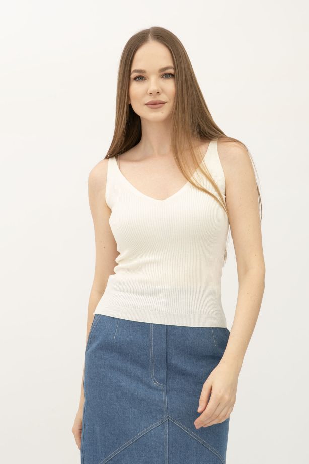 Молочна майка в рубчик з глибоким вирізом 24100501 - з новими колекціями кожного сезону