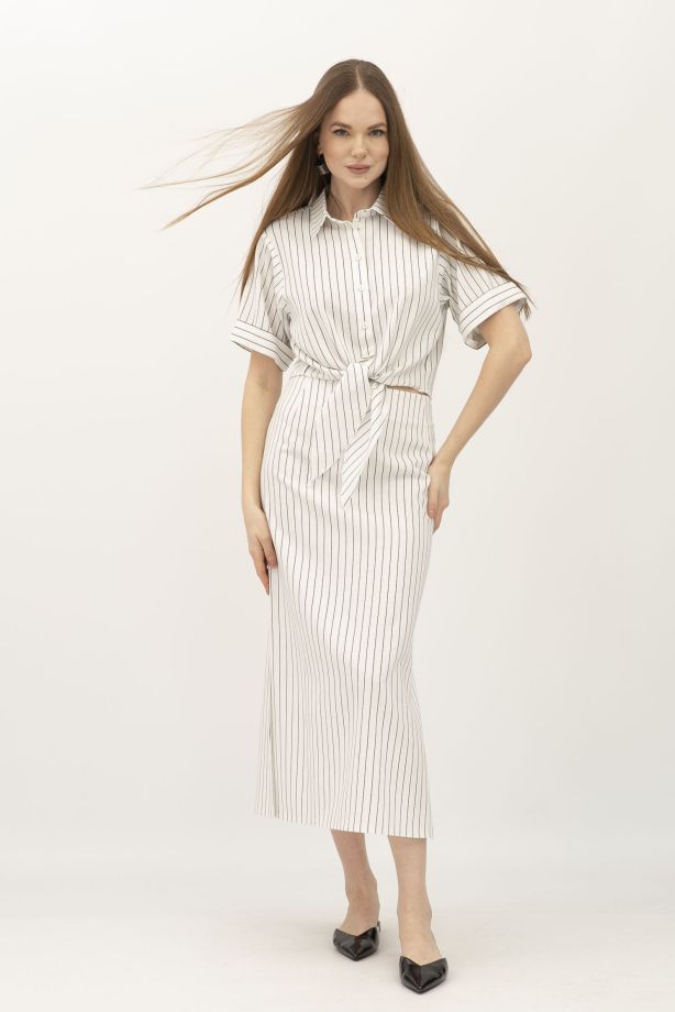 Костюм з льону блуза та спідниця у вертикальну смужку Онекс 1 - вишуканість і комфорт для кожної