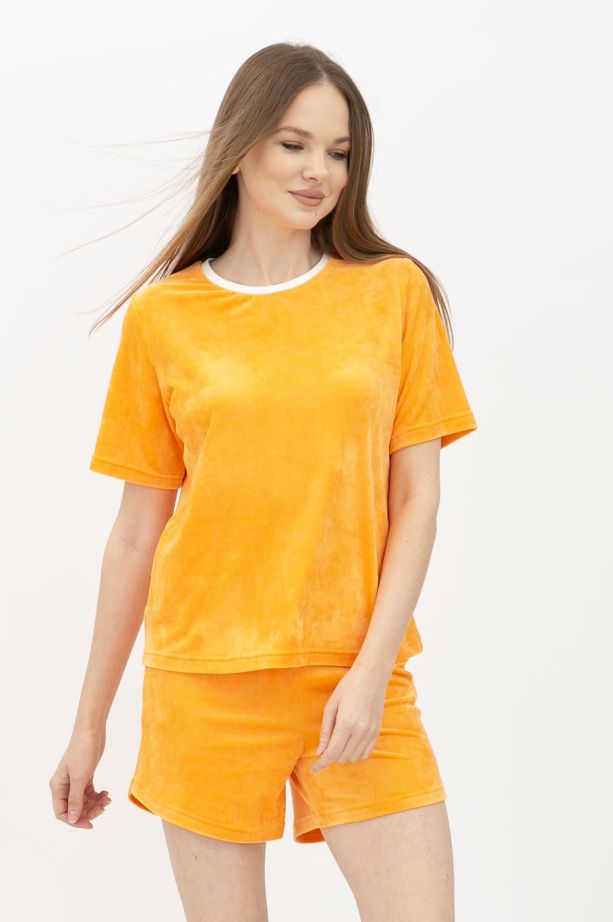 Велюровий костюм футболка та шорти оранжевого кольору Джумі - з новими колекціями кожного сезону