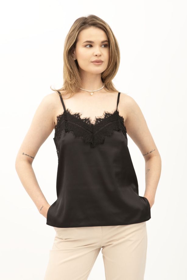 Майка жіноча шовкова чорна на бретелях Шайна 01 - з високоякісних матеріалів