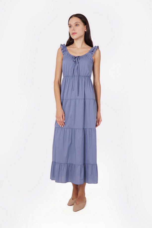 Літня бавовняна сукня міді синя з відкритими плечами Едрік - з високоякісних матеріалів
