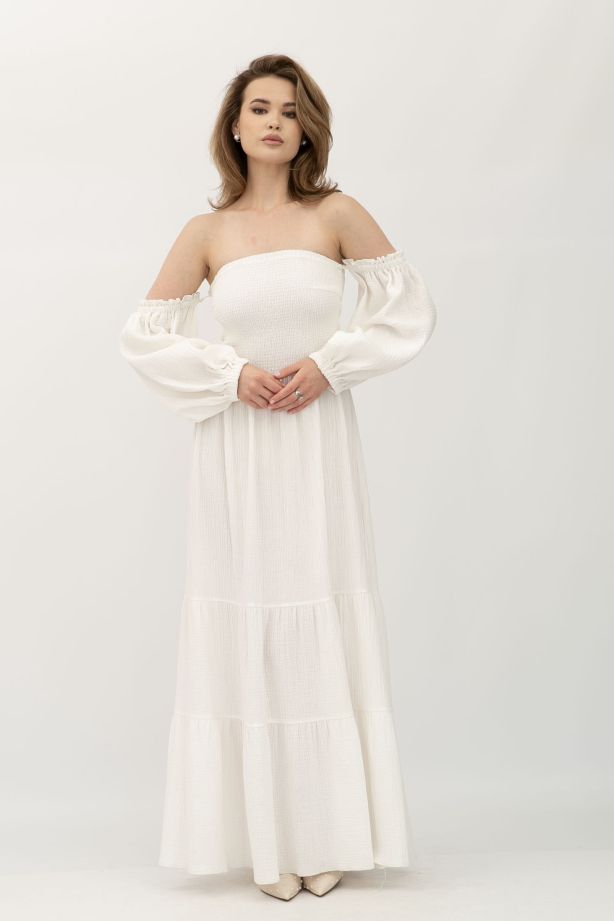 Сукня максі в молочна з корсетною частиною з нитки-резинки Тобі - для особливих моментів