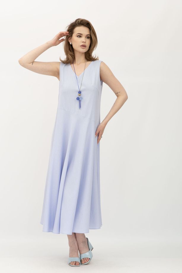 Блакитна лляна сукня міді довжини без рукав Севіла - для будь-якої події та сезону