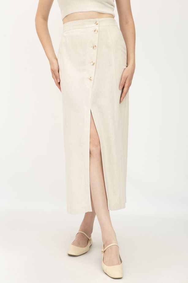Лляна спідниця бежева прямого силуету Азуріт - для будь-якої події та сезону