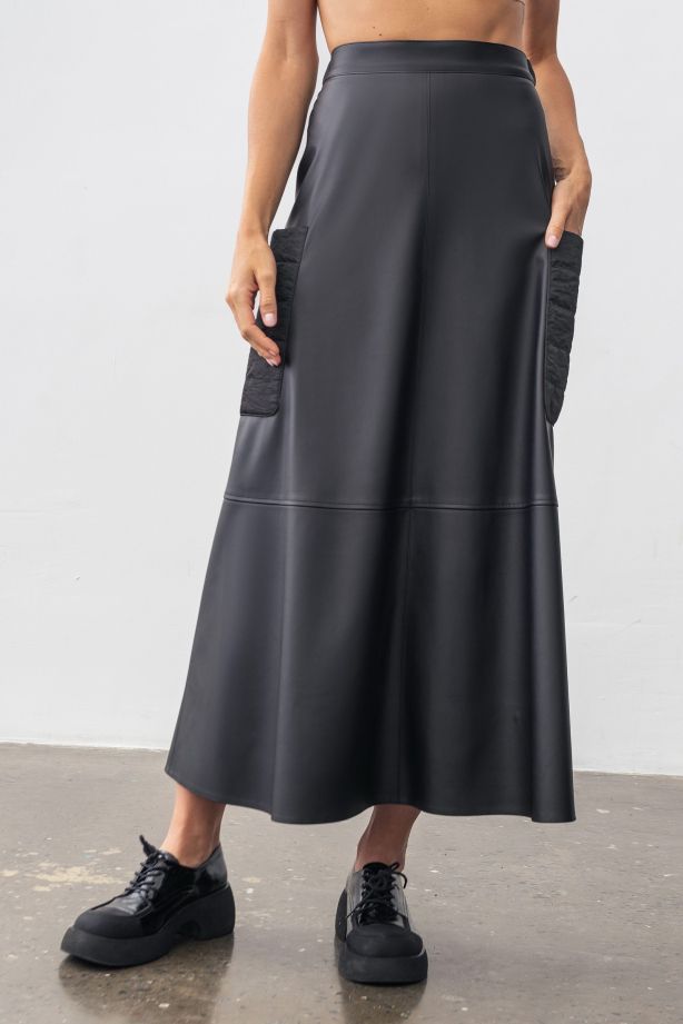 Спідниця з еко шкіри чорна силуету-трапеція Філора - для всіх випадків життя