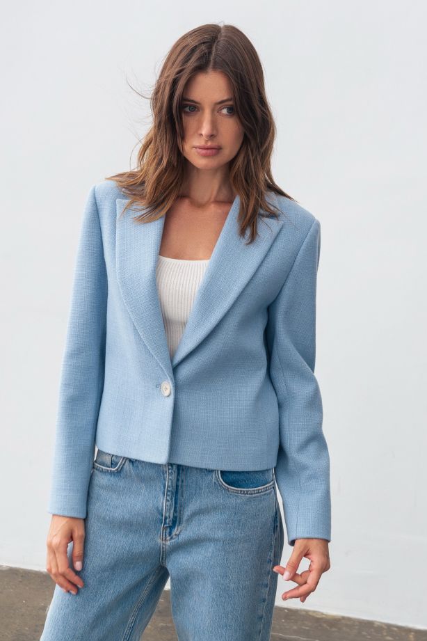 Жакет однобортний блакитного кольору вкорочений Оріел - якість, перевірена часом
