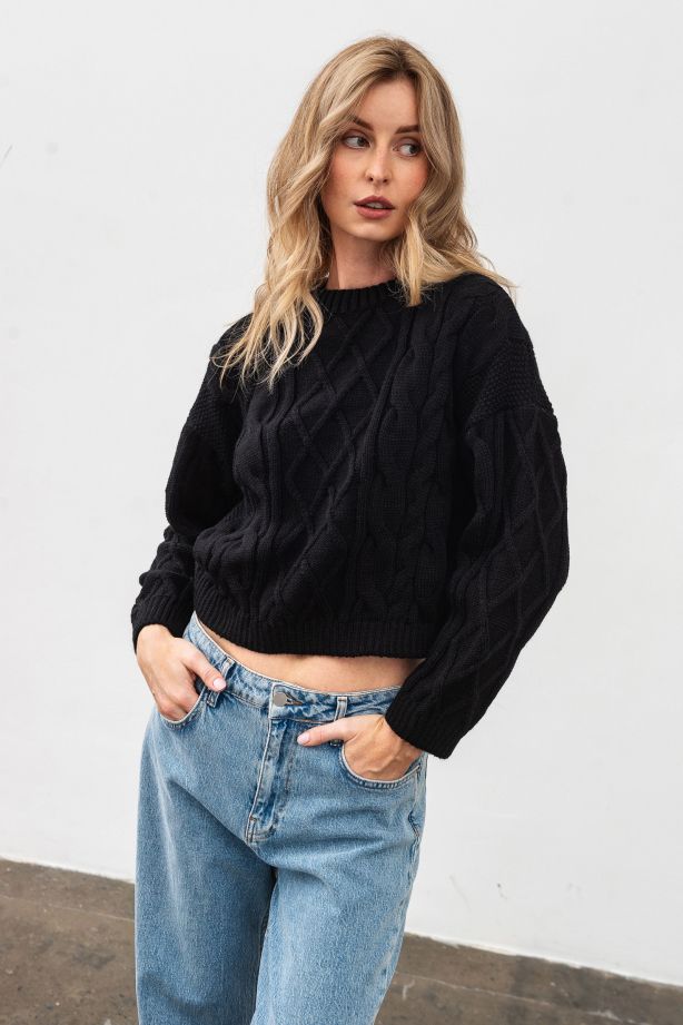 Чорний вкорочений джемпер з вмістом вовни 4548/2024 - якість, перевірена часом
