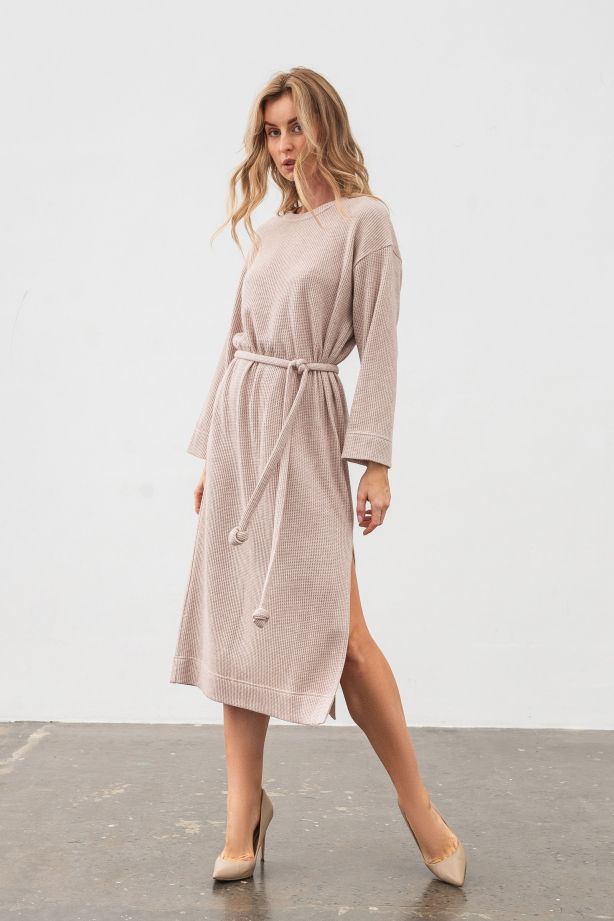 Трикотажна сукня міді з боковим розрізом бежевого кольору Малиса - ваш вибір для стильного життя