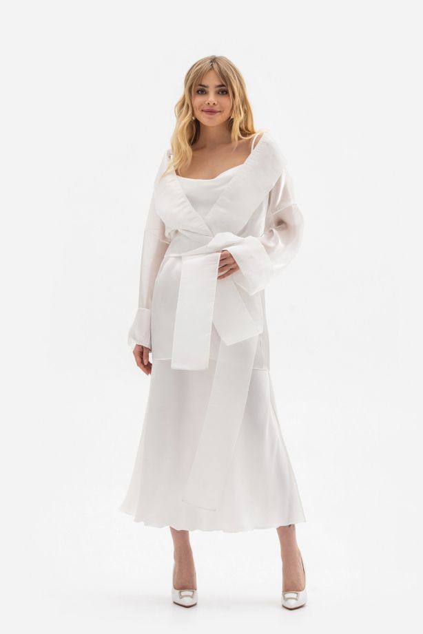 Прозора туніка-блуза вільного силуету білого кольору Оніра - модні тренди сезону