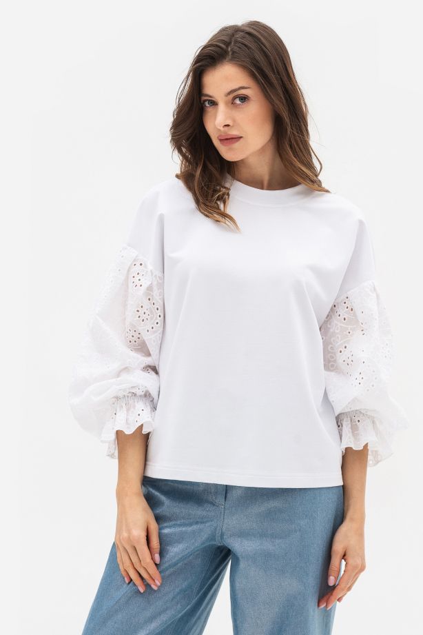 Світшот білого кольору з оригінальними рукавами з прошви Рінері 01 - елегантність та стиль для вас