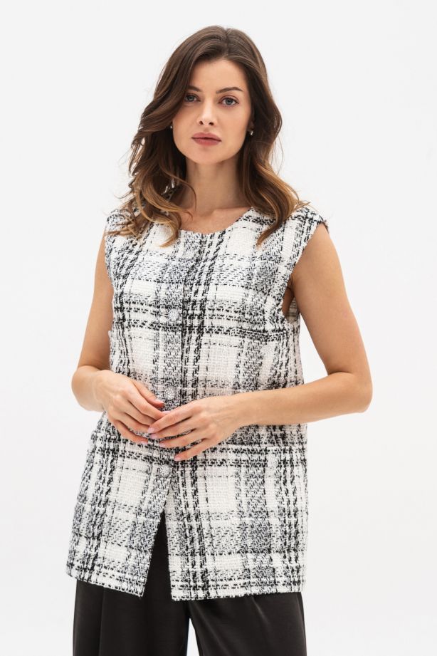 Жилет однобортний середньої довжини білого кольору Мелея - для вашої щоденної краси