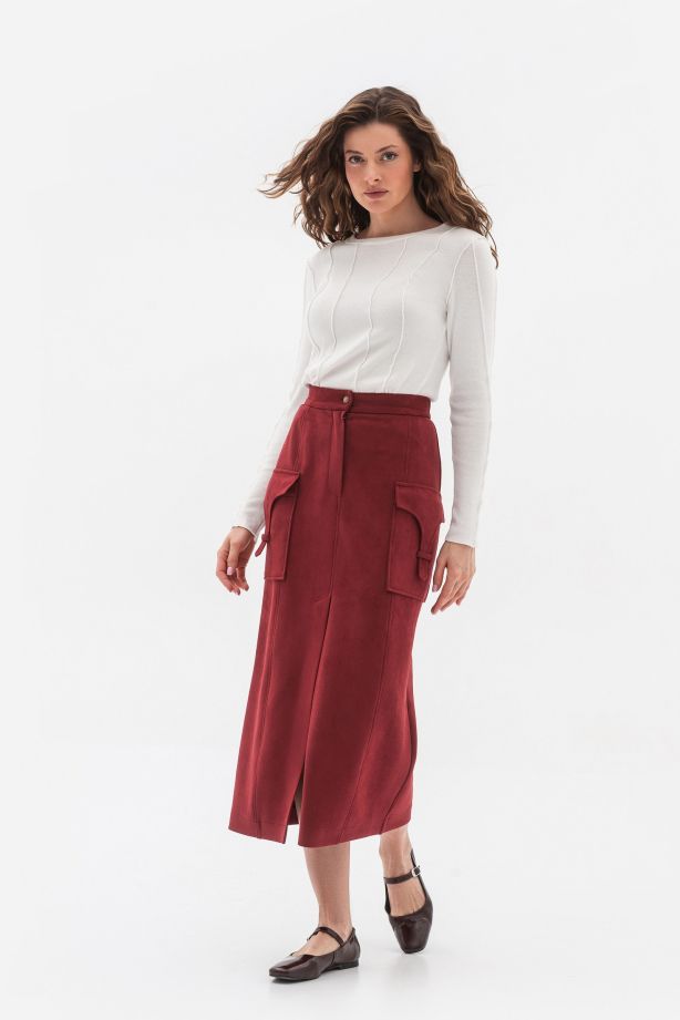 Спідниця міді з еко-замші бордового кольору Лівері 02 - для будь-якої події та сезону