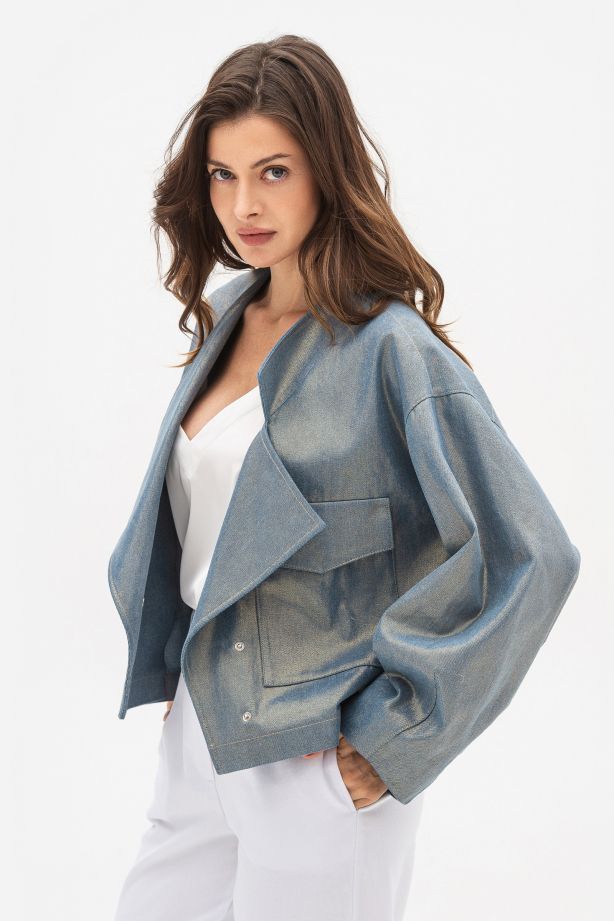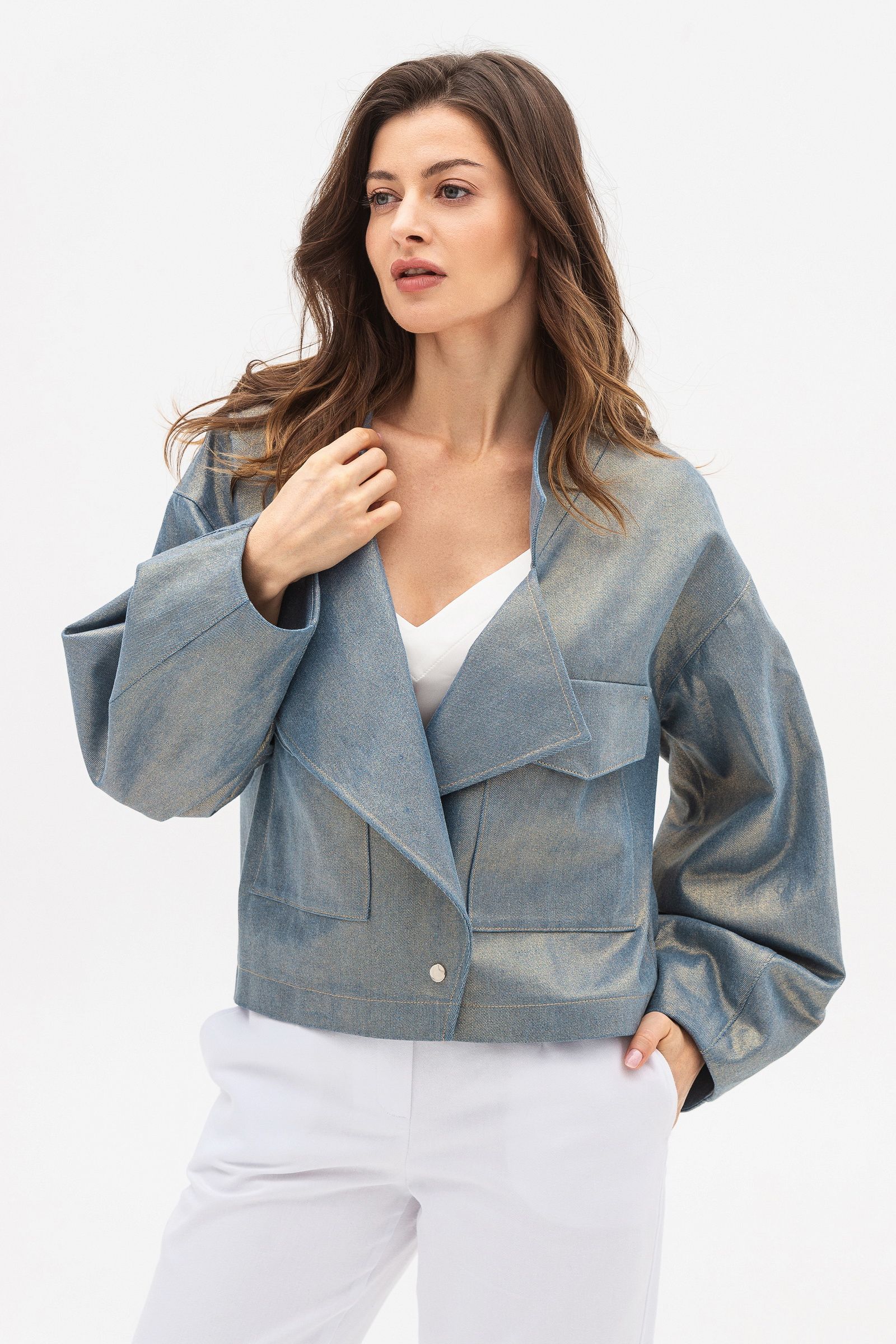 Котонова куртка вільного силуету золотистого кольору Чаріна - якість, перевірена часом