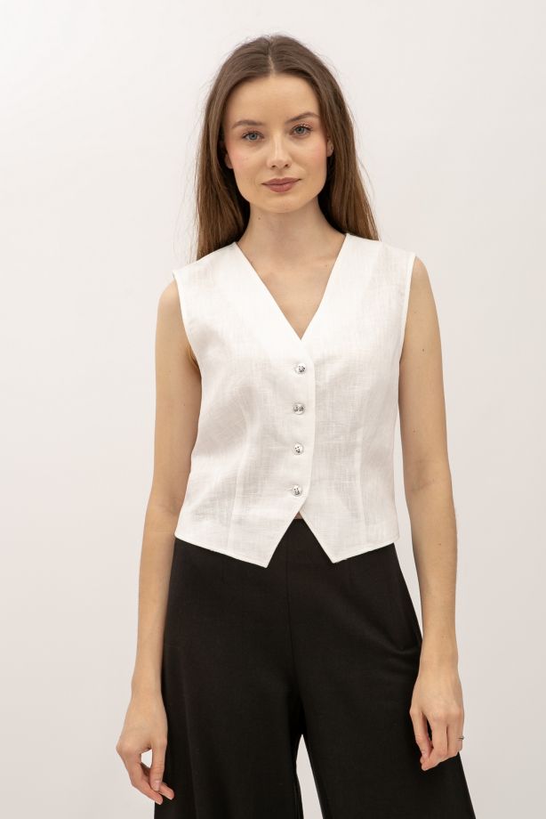 Жилет молочний з вмістом 80% льону Лареда 1 - будьте в тренді кожного дня