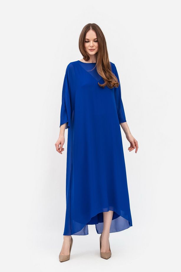 Сукня максі синього кольору з шифону вільного силуету Нєжин 02 - елегантність та стиль для вас