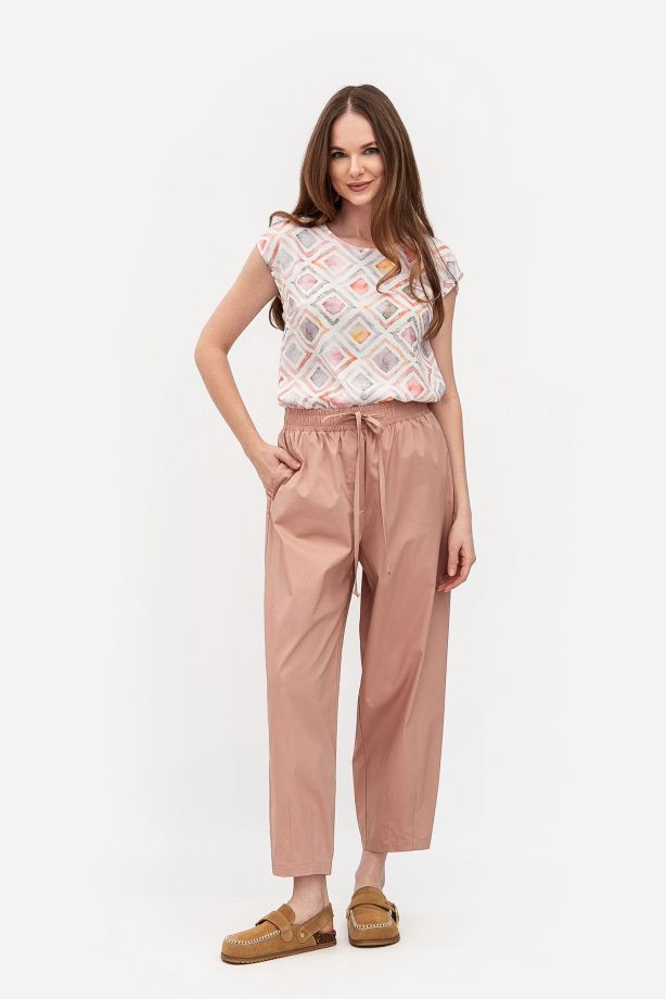 Котонові брюки кольору капучино вільного крою Цветі 05 - з високоякісних матеріалів