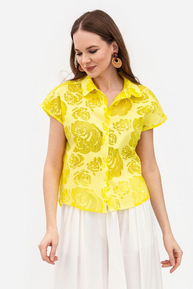 Блуза напівприталеного крою жовтого кольору Ждана 01 - для будь-якої події та сезону