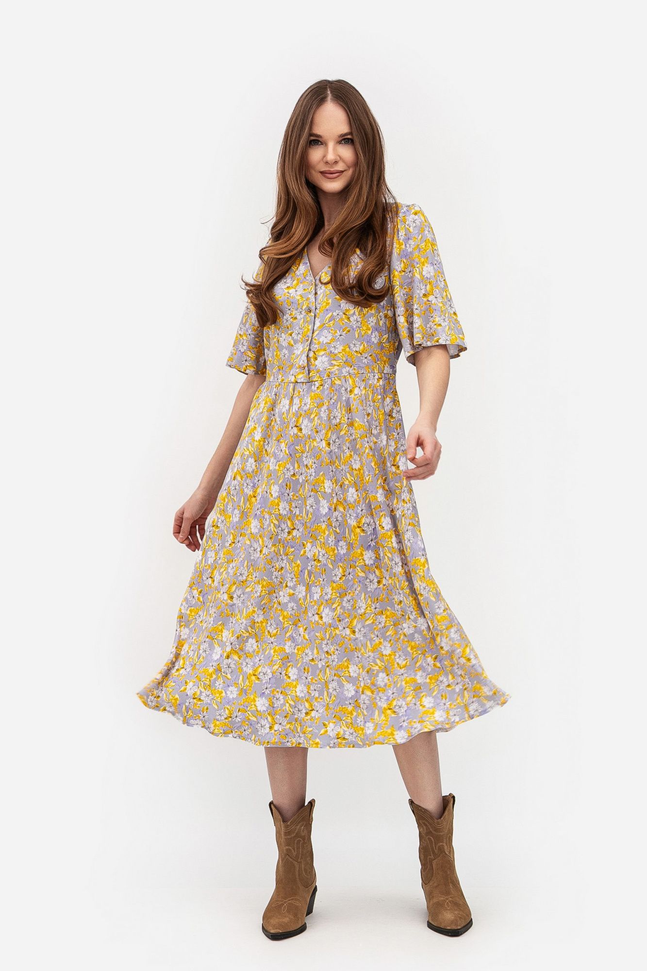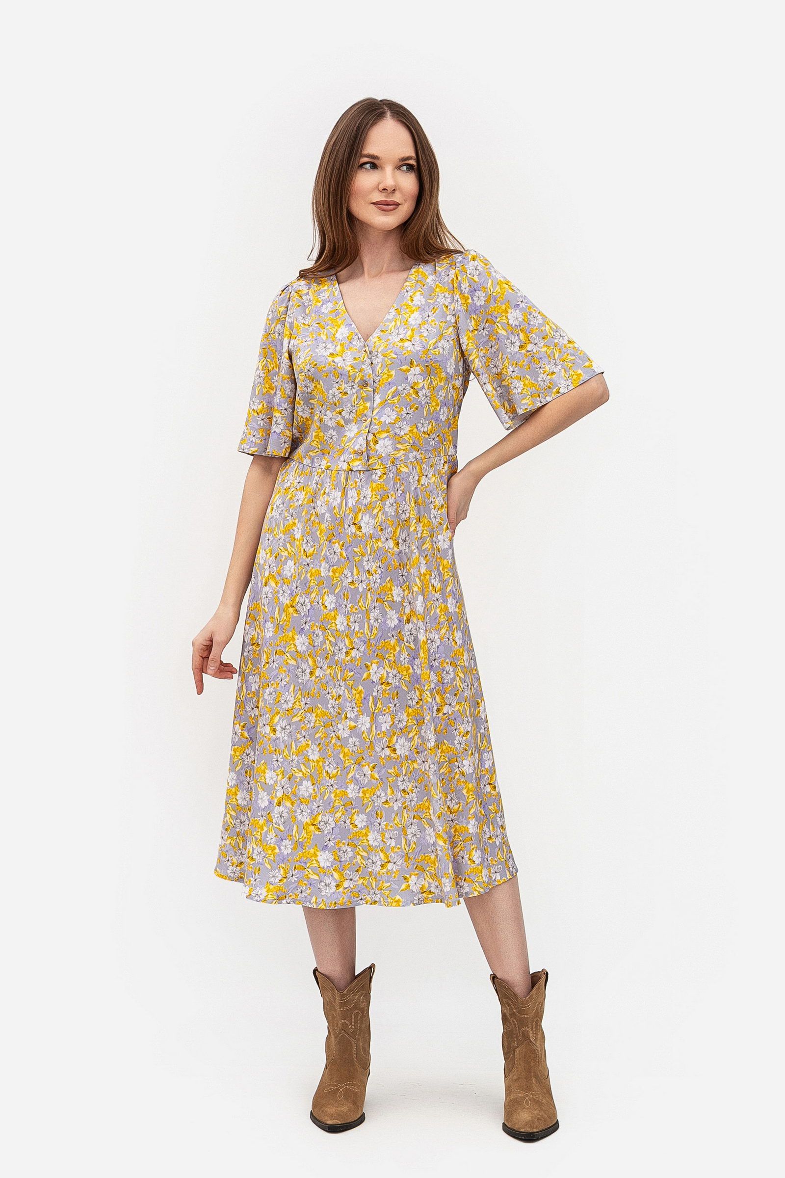 Сукня зі штапелю напівприталеного силуету сірого кольору Ортія 01 - модні тренди сезону