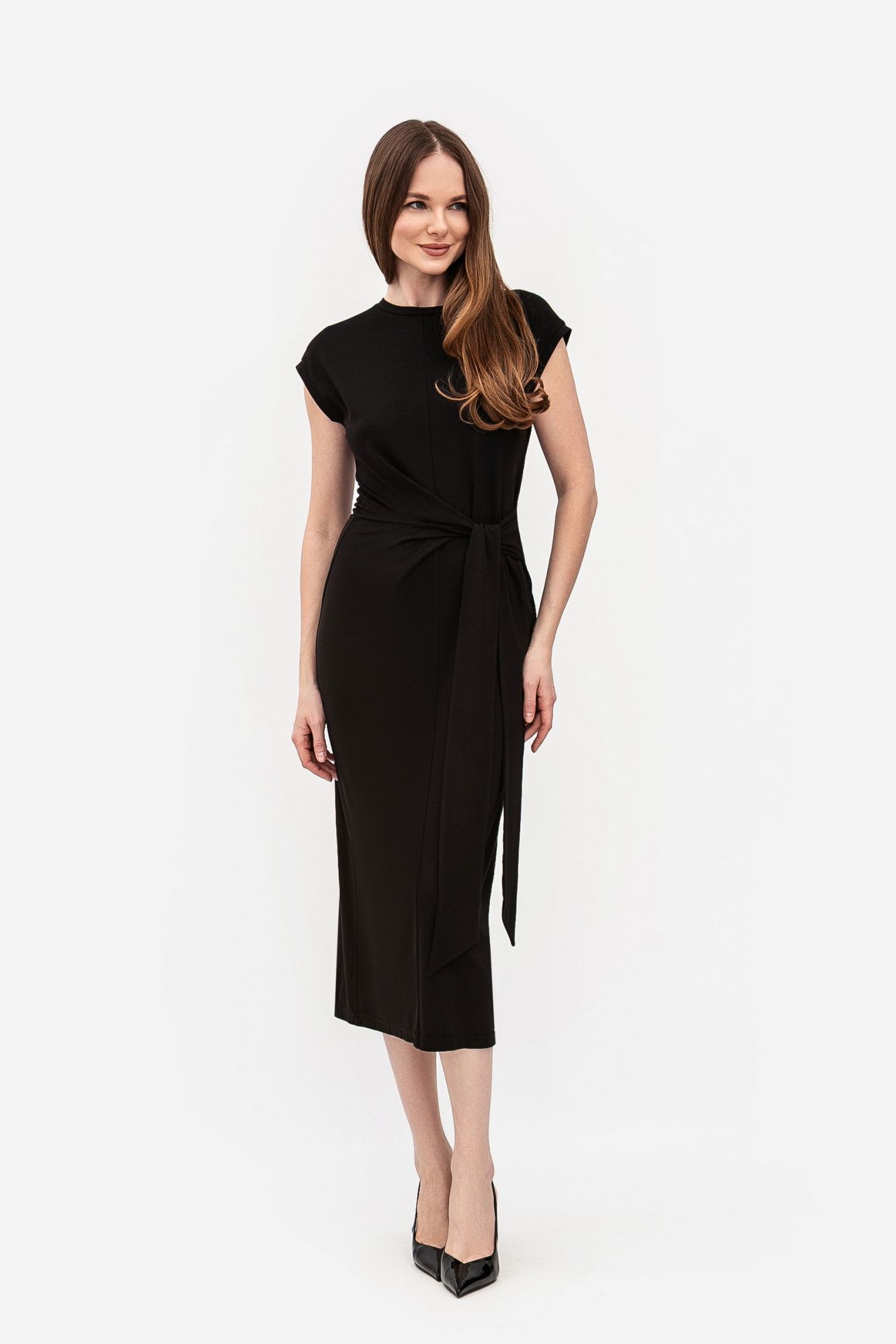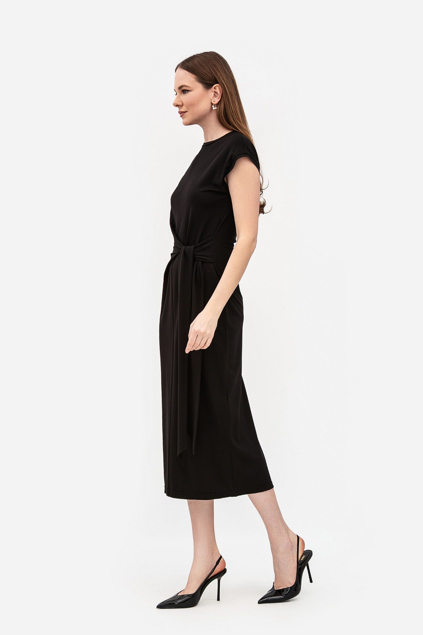 Трикотажна сукня міді довжини чорного кольору Астрія 01 - гармонія стилю та комфорту