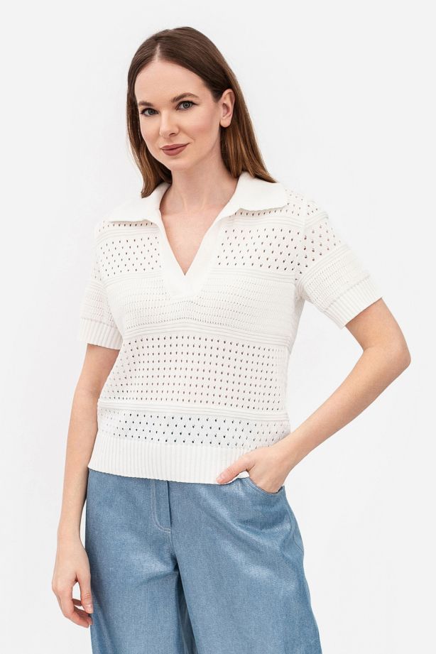 Жіночий джемпер з коміром поло молочного кольору 25107000 - для вашої щоденної краси