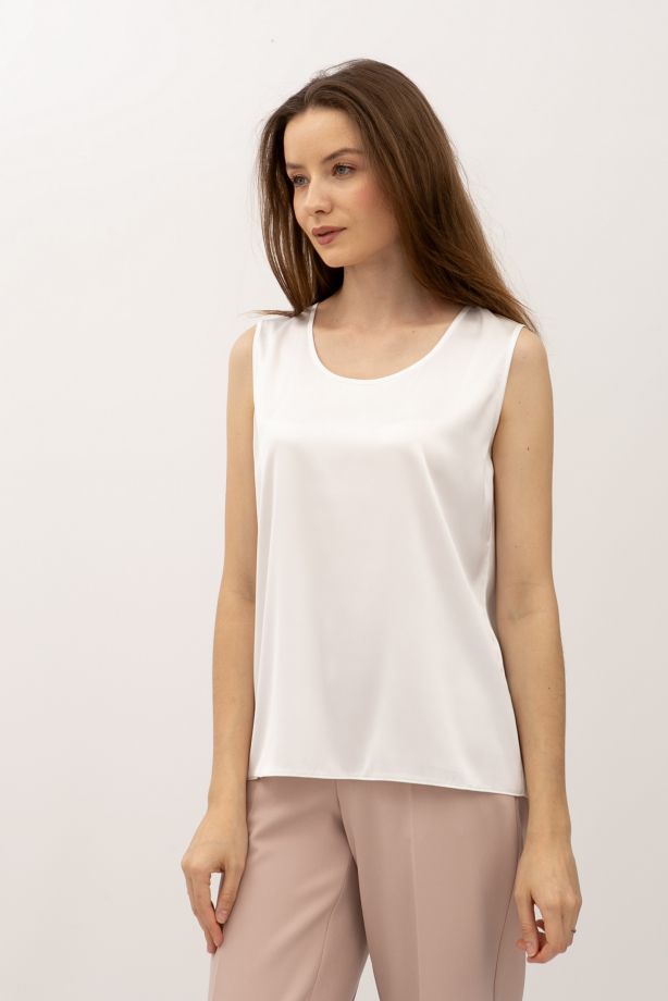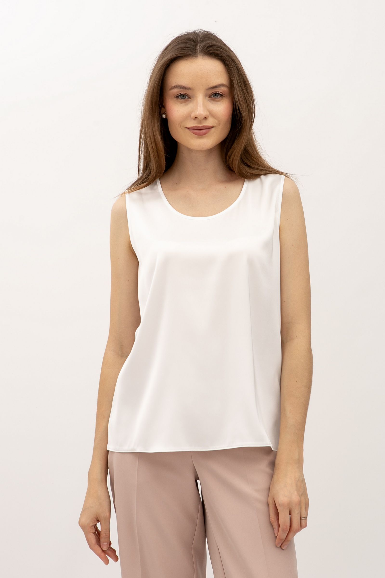 Сатинова жіноча майка молочна прямого силуету Донато 06 - для всіх випадків життя