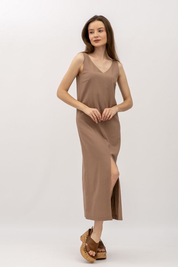 Лляний сарафан довжини міді кольору капучино Фарлі 07 - створіть свій унікальний образ
