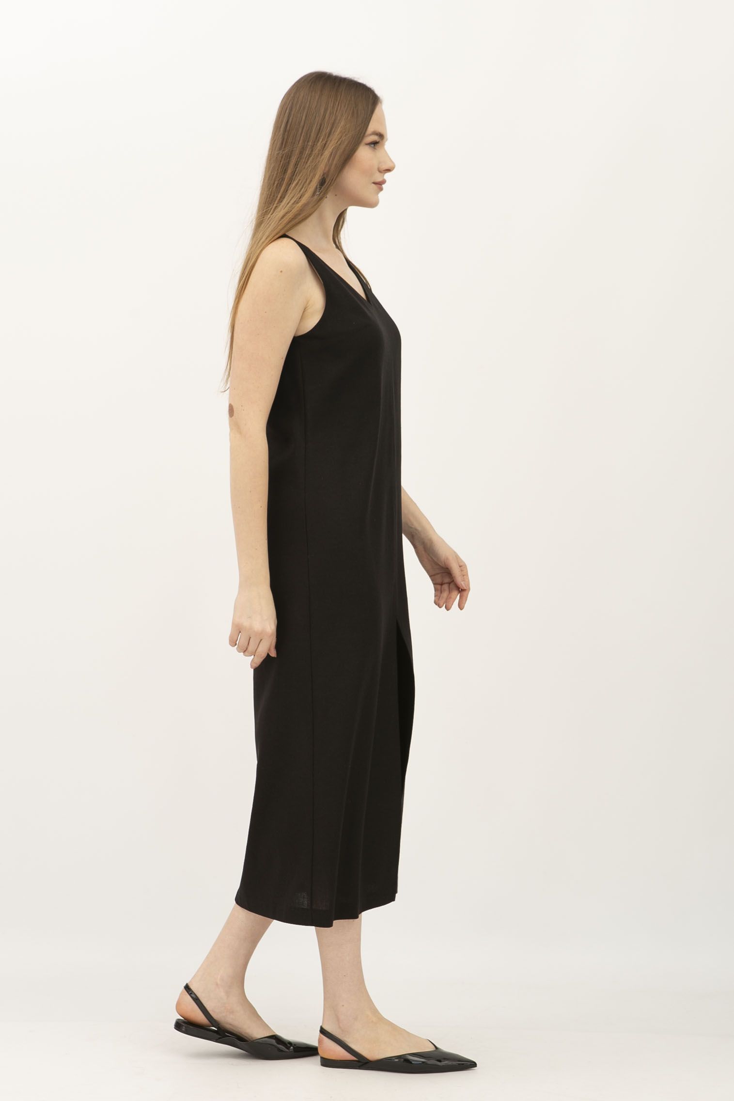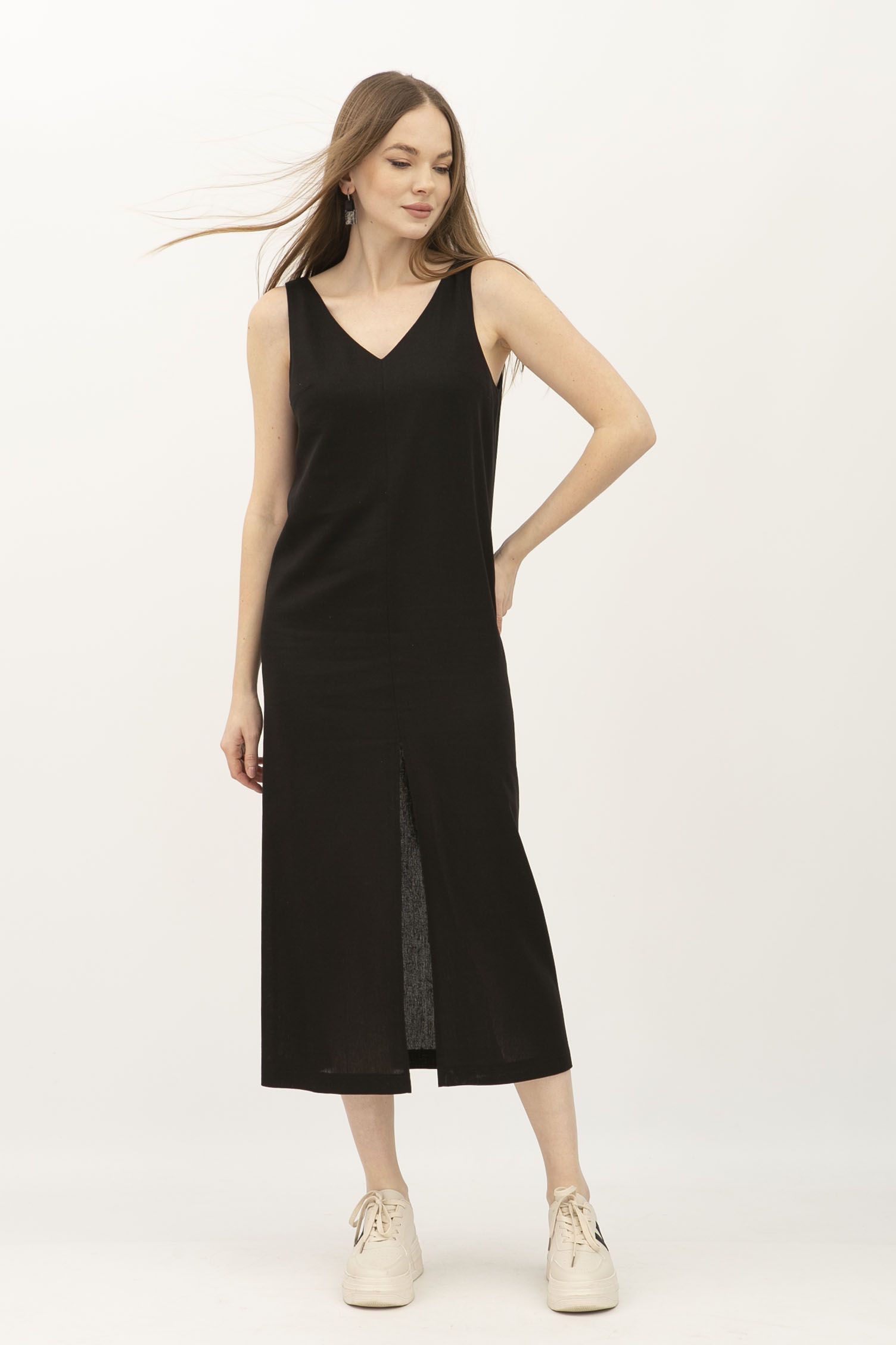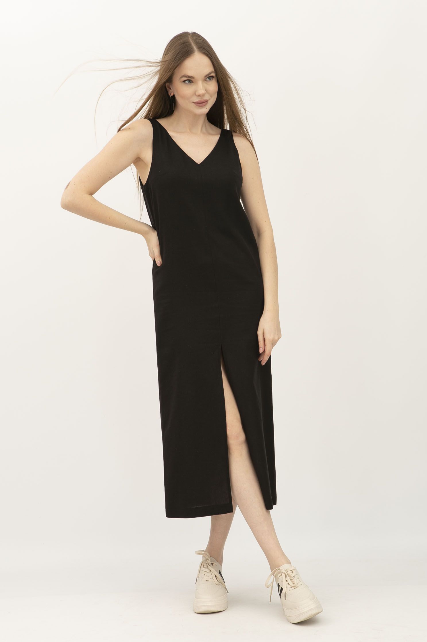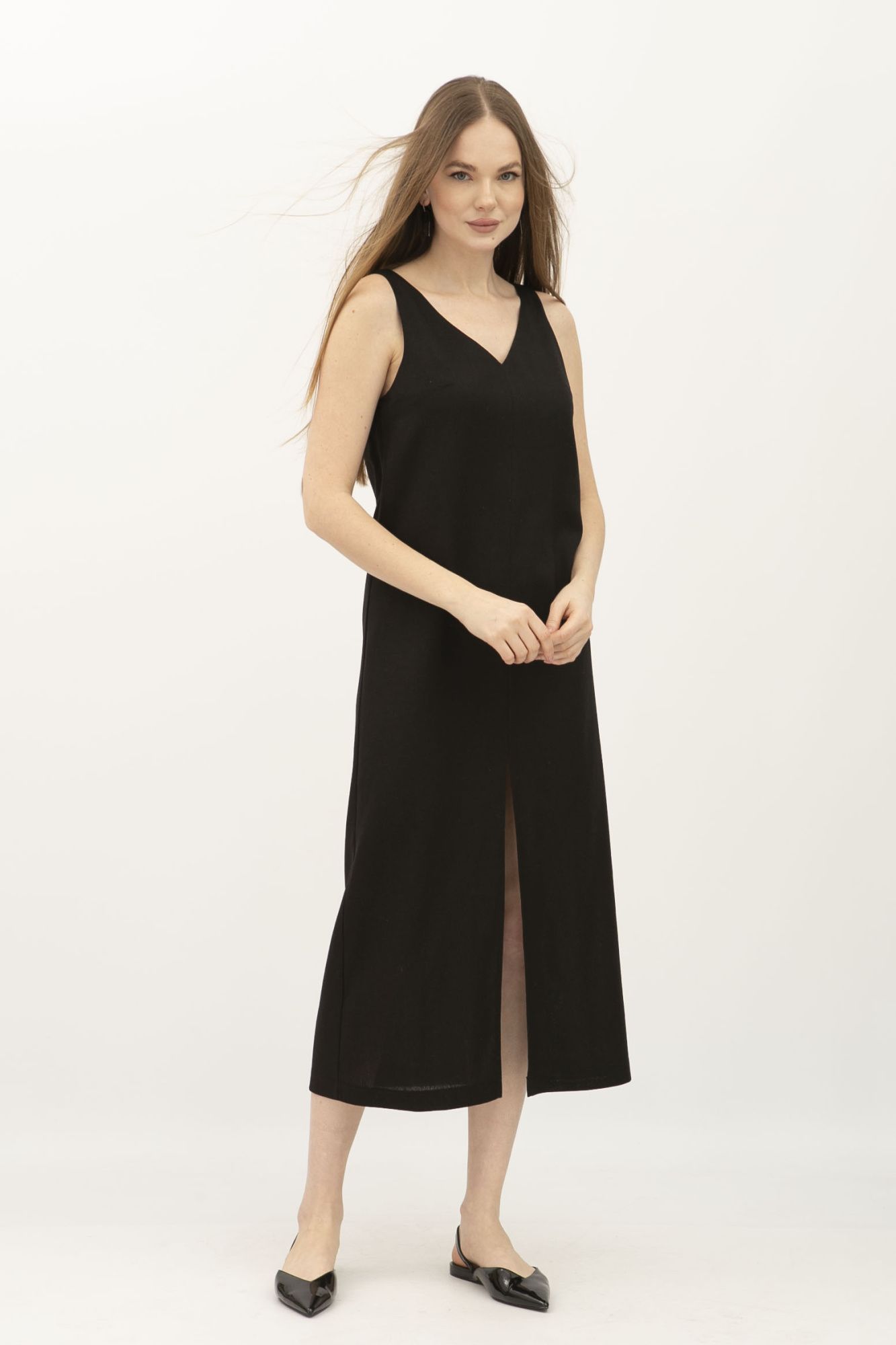 Лляний сарафан довжини міді чорного кольору Фарлі 08 - з відмінним співвідношенням ціни та якості