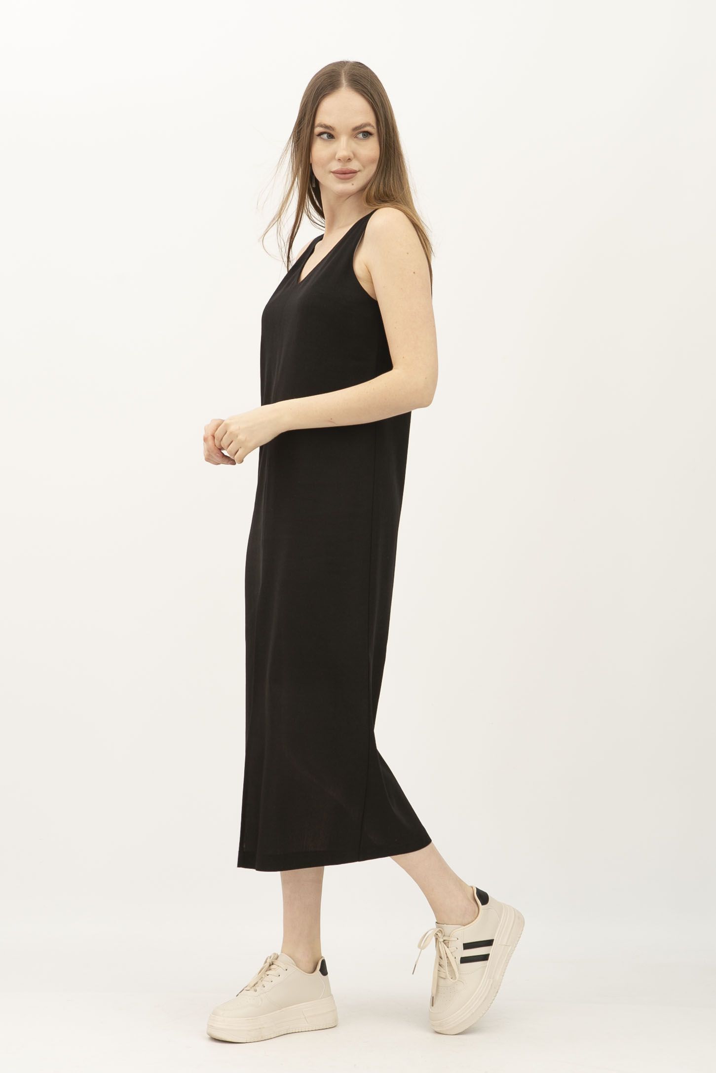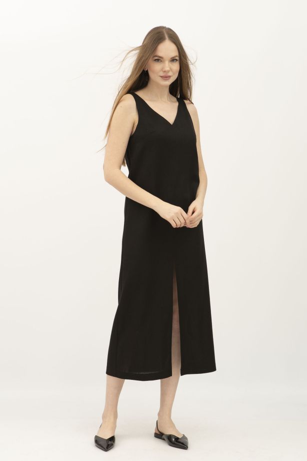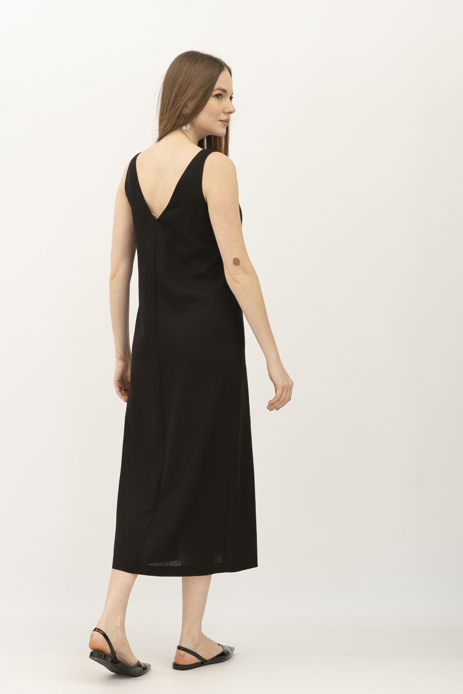 Лляний сарафан довжини міді чорного кольору Фарлі 08 - з різноманіттям кольорів та фасонів