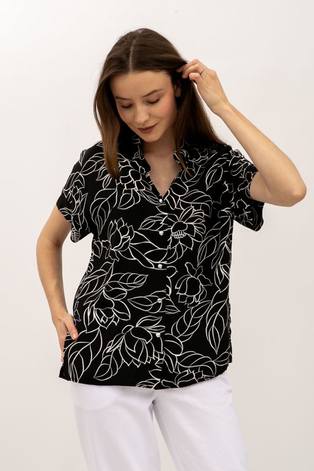Блуза зі штапелю вільного силуету чорного кольору Полана 01 - з високоякісних матеріалів