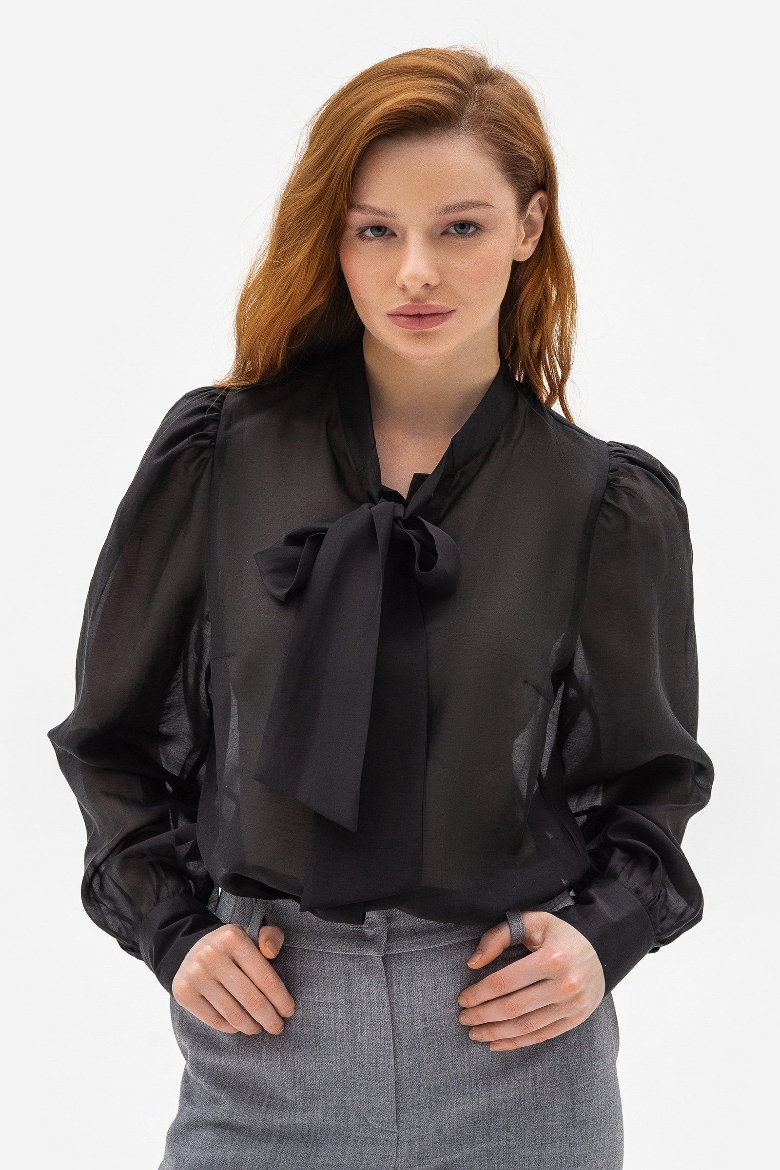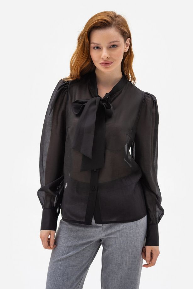 Напівпрозора блуза вільного силуету чорного кольору Астрея 03 - ваш вибір для особливих випадків