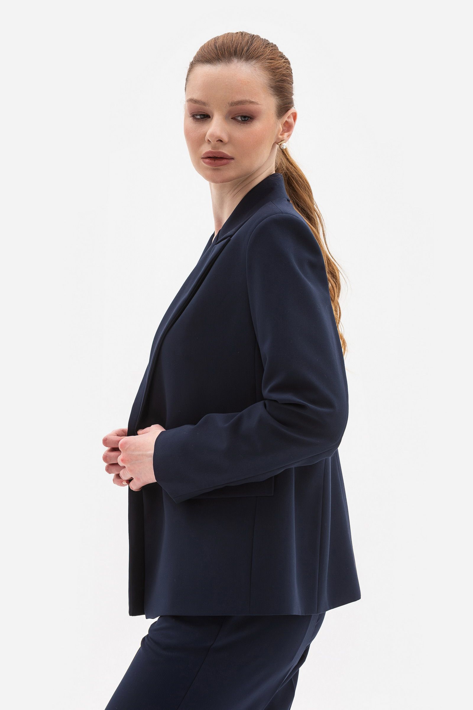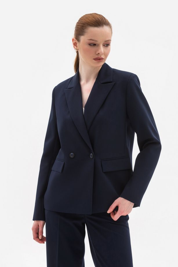 Двобортний жакет з костюмної тканини синього кольору Фаєрі 01 - ваш вибір для особливих випадків