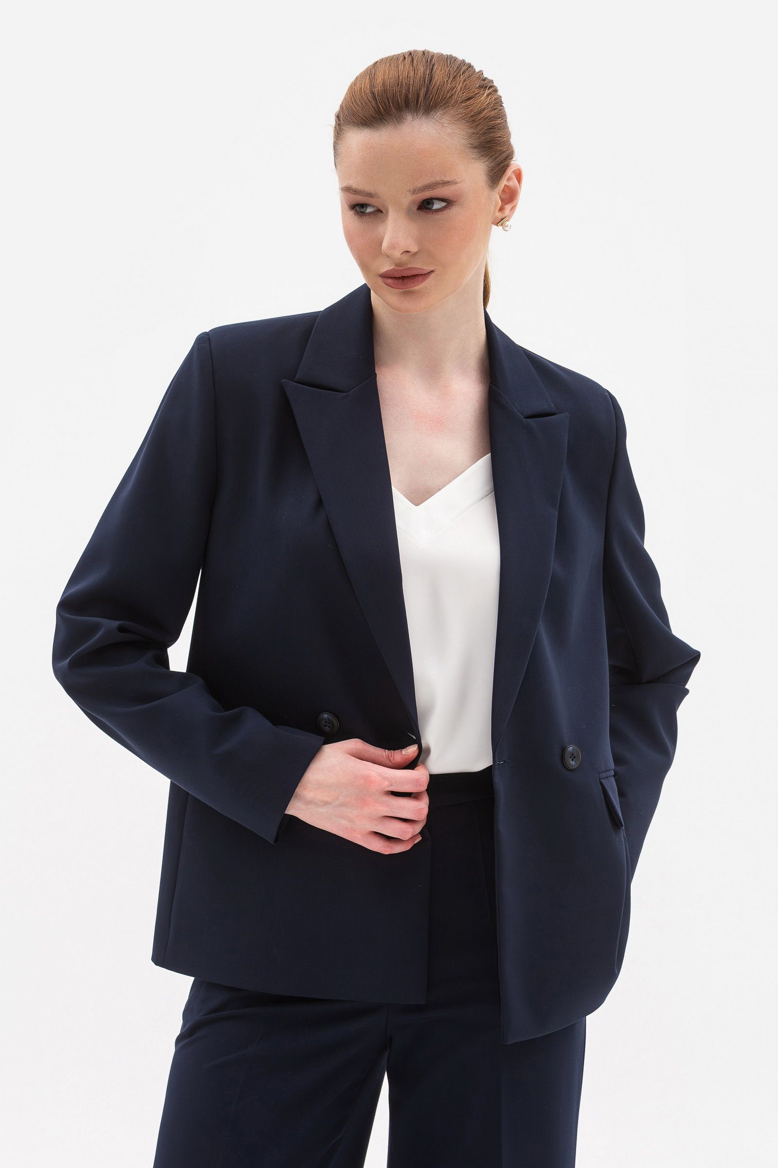 Двобортний жакет з костюмної тканини синього кольору Фаєрі 01 - модні тренди сезону