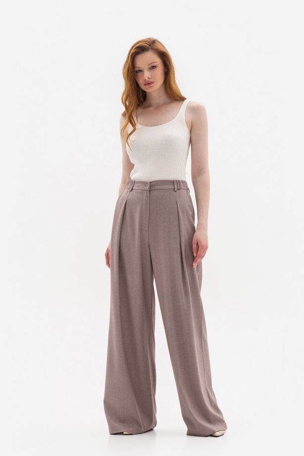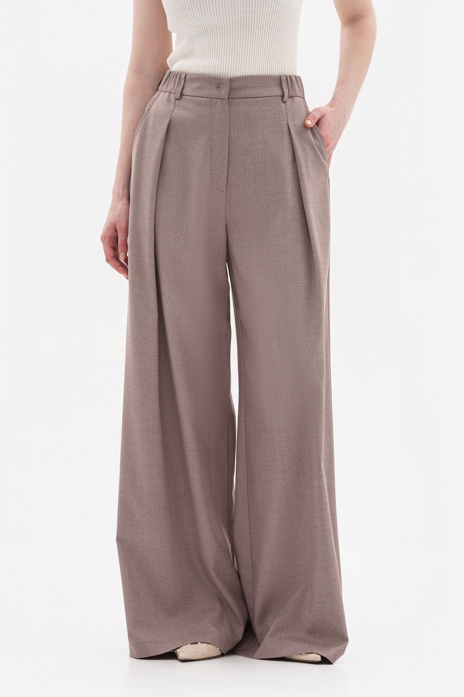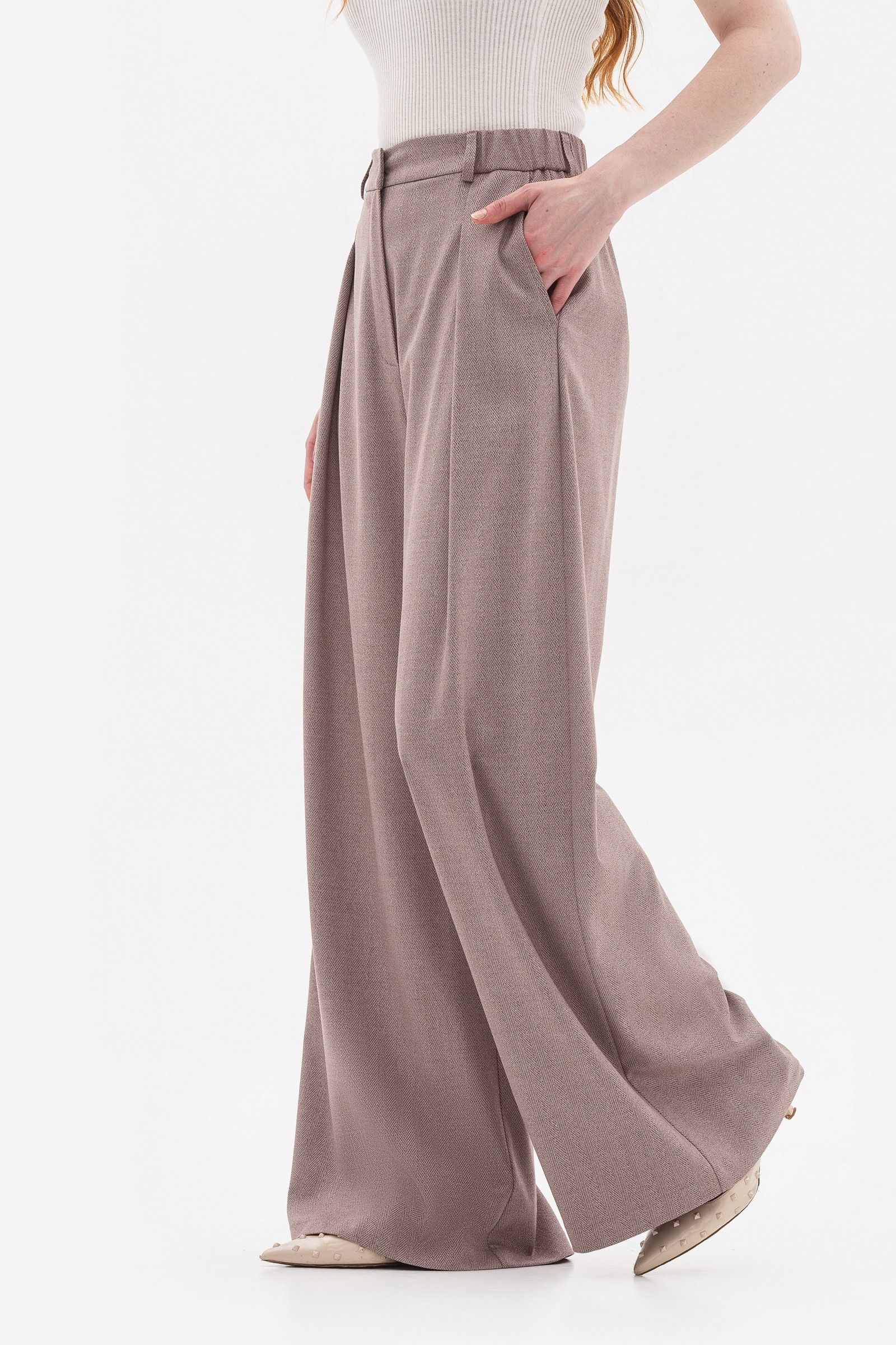 Брюки-палаццо з костюмної тканини бежевого кольору Нейра 01 - для особливих моментів