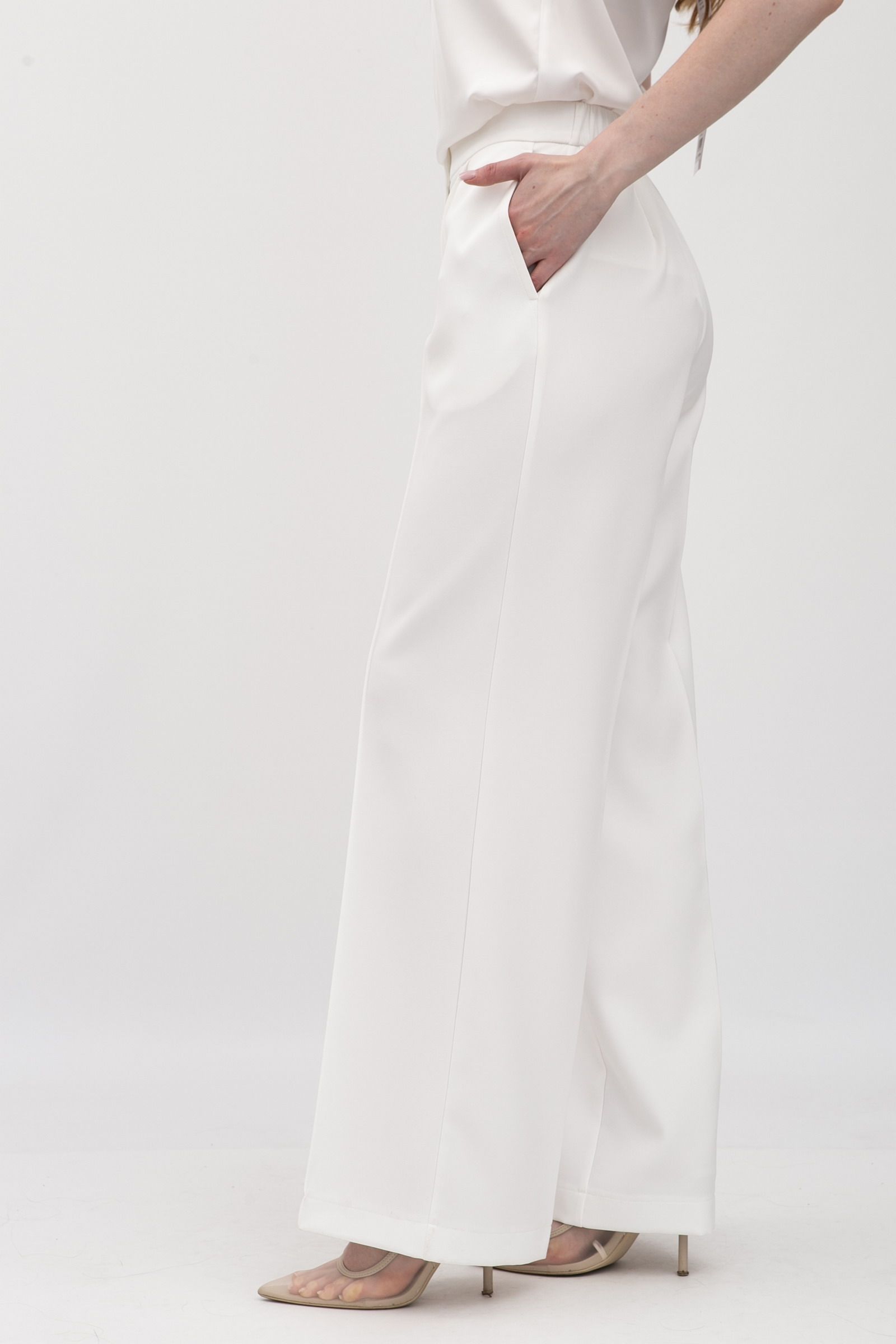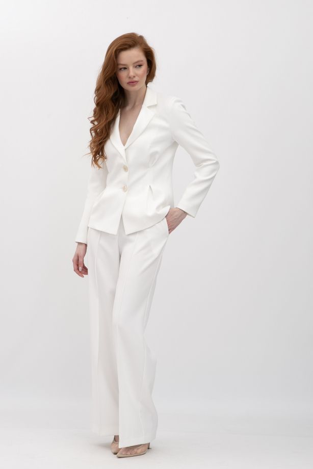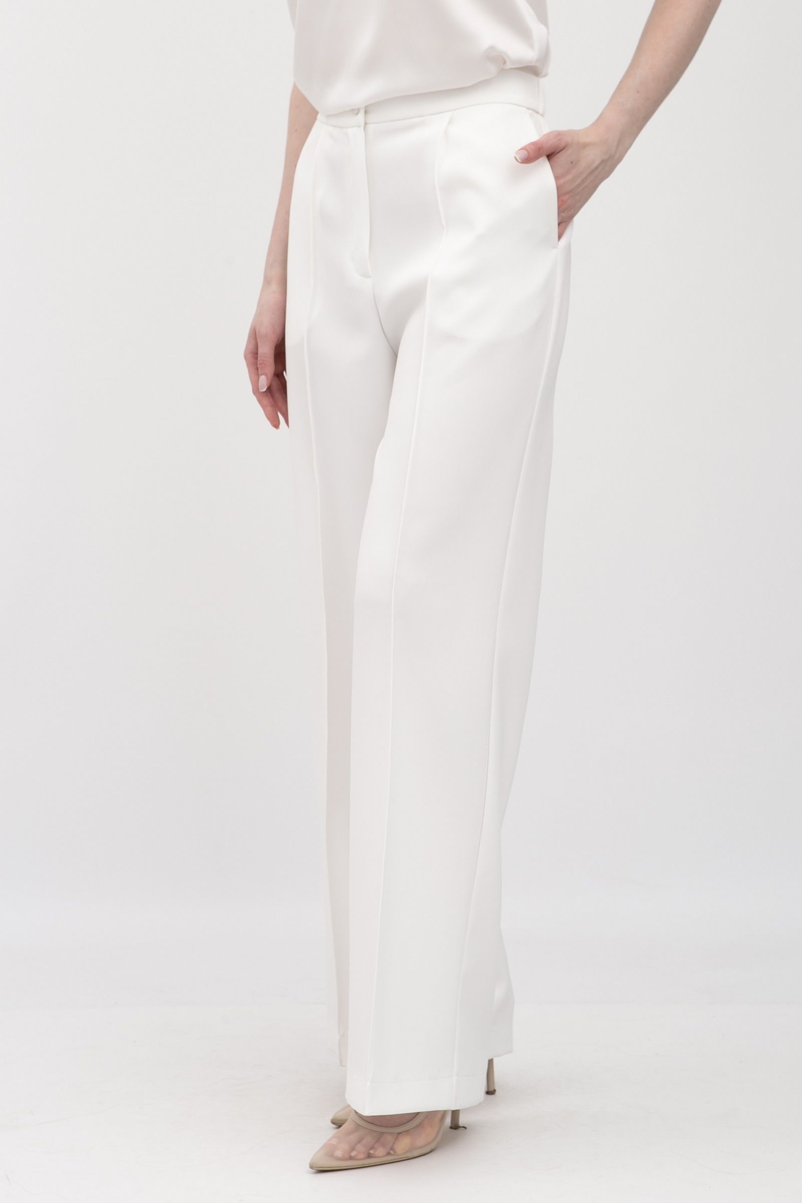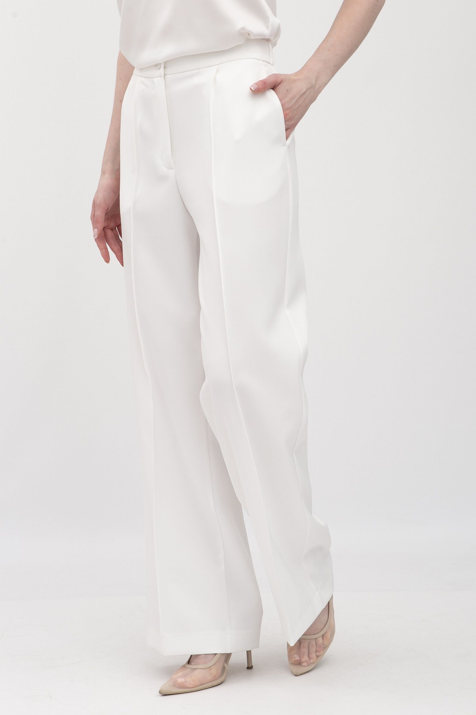 Брюки з костюмної тканини молочного кольору Аквас - для вашого неповторного стилю
