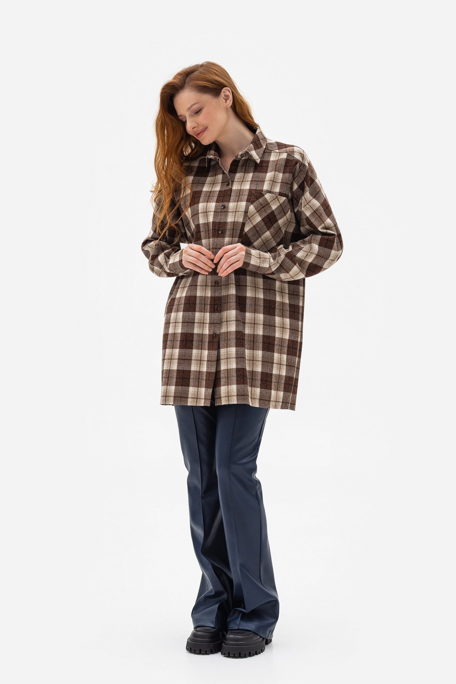 Сорочка в клітинку коричневого кольору Шаделі 11 - елегантність та стиль для вас