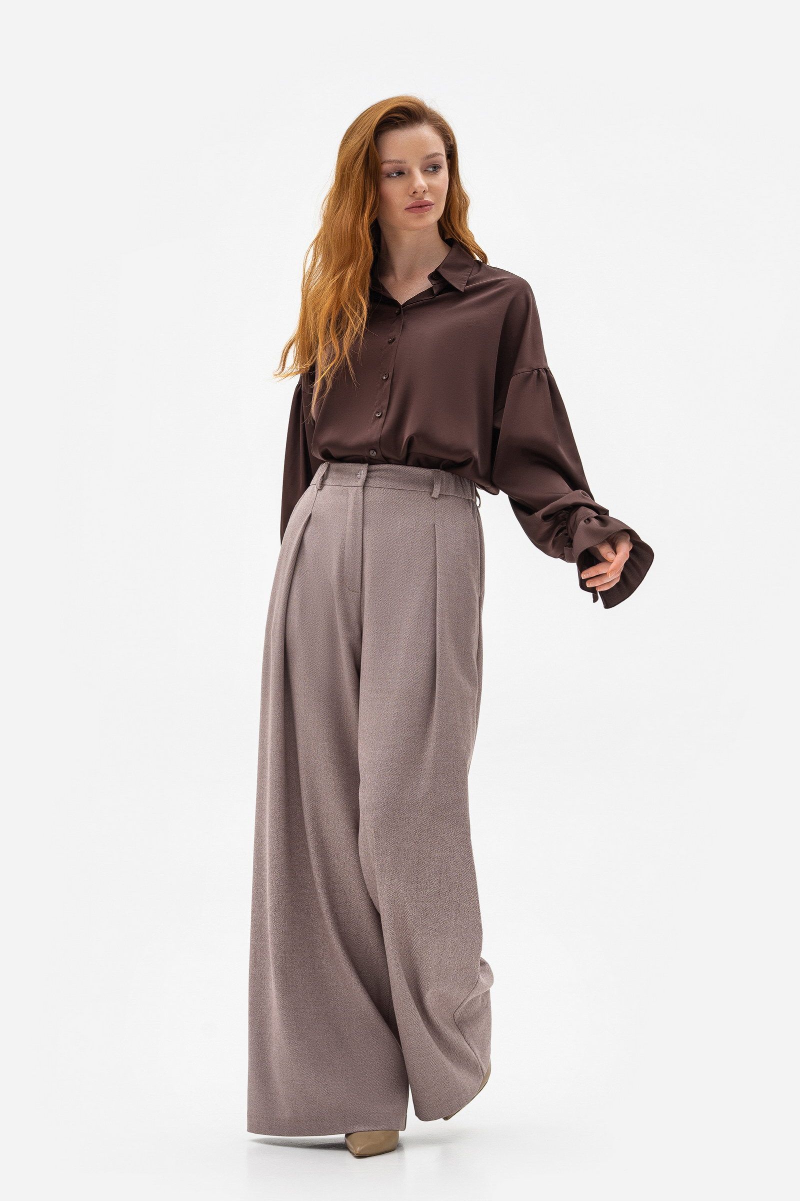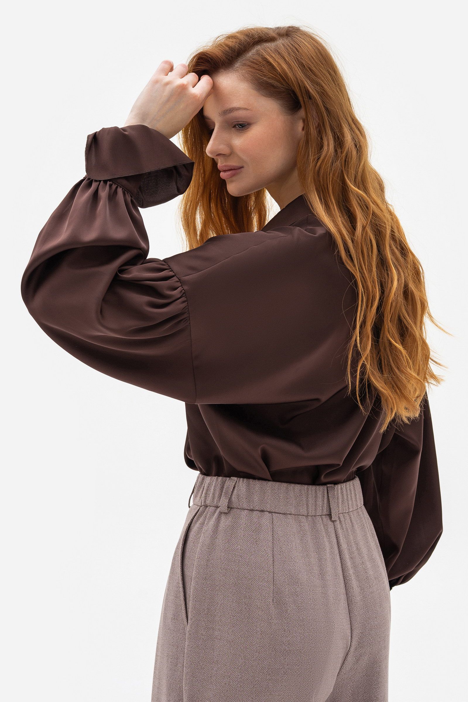 Шовкова блуза коричнева з коміром Лейра - вишуканість і комфорт для кожної