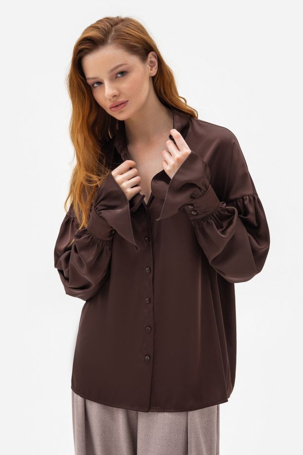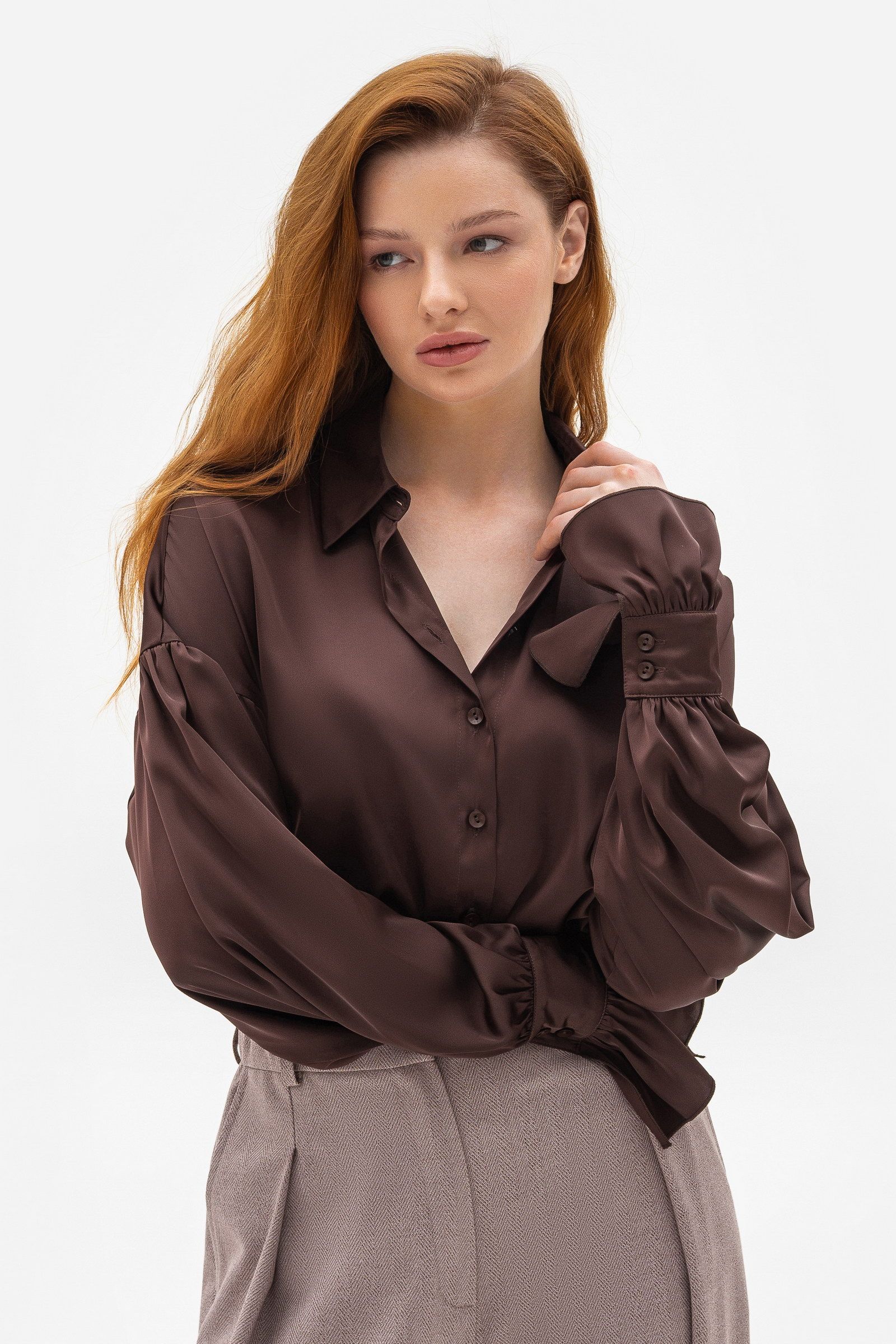 Шовкова блуза коричнева з коміром Лейра - модні тренди сезону