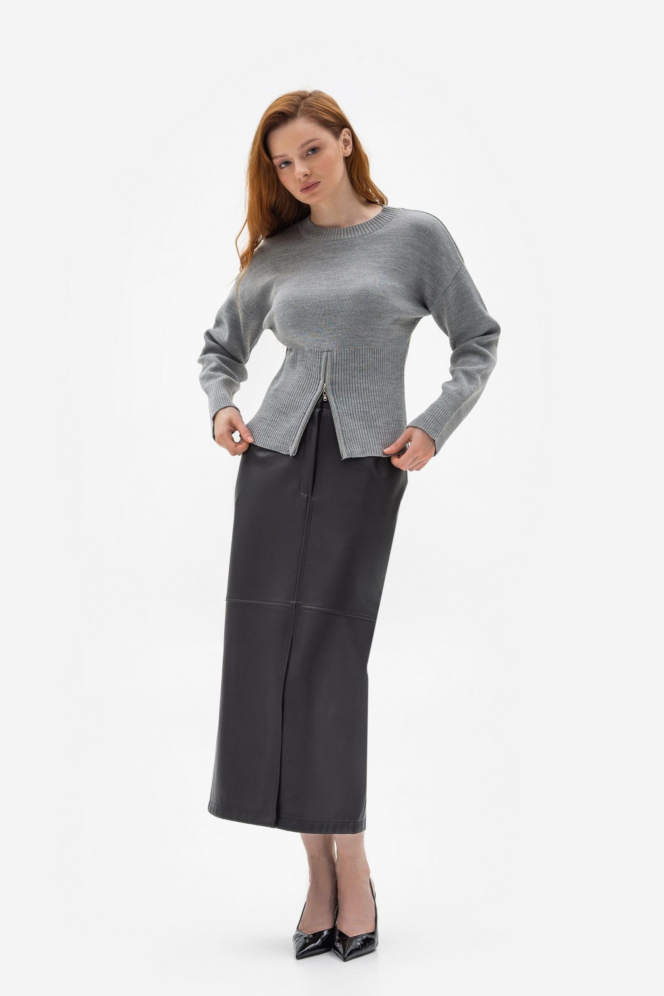 Спідниця міді з екошкіри чорного кольору Лафея - гармонія стилю та комфорту