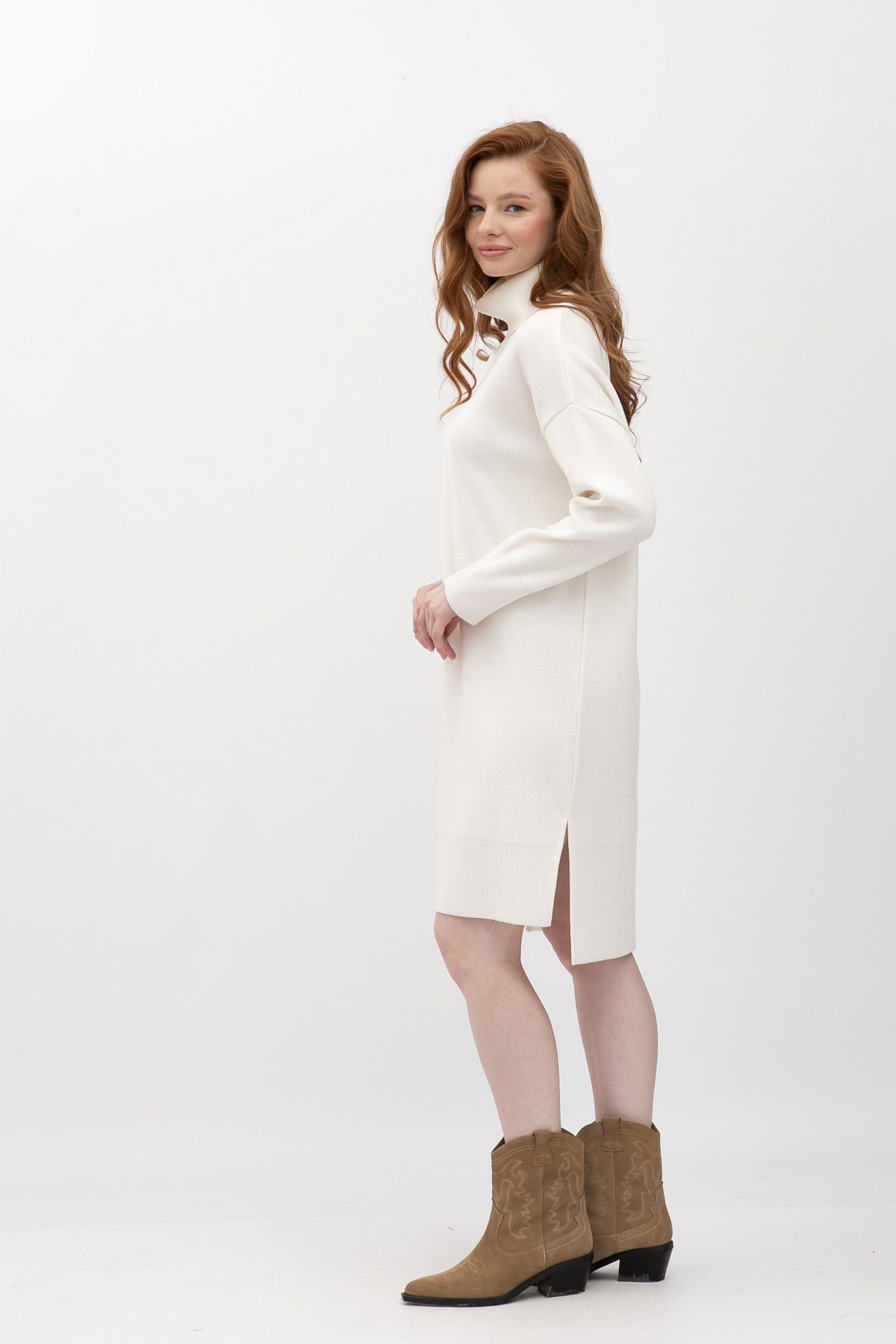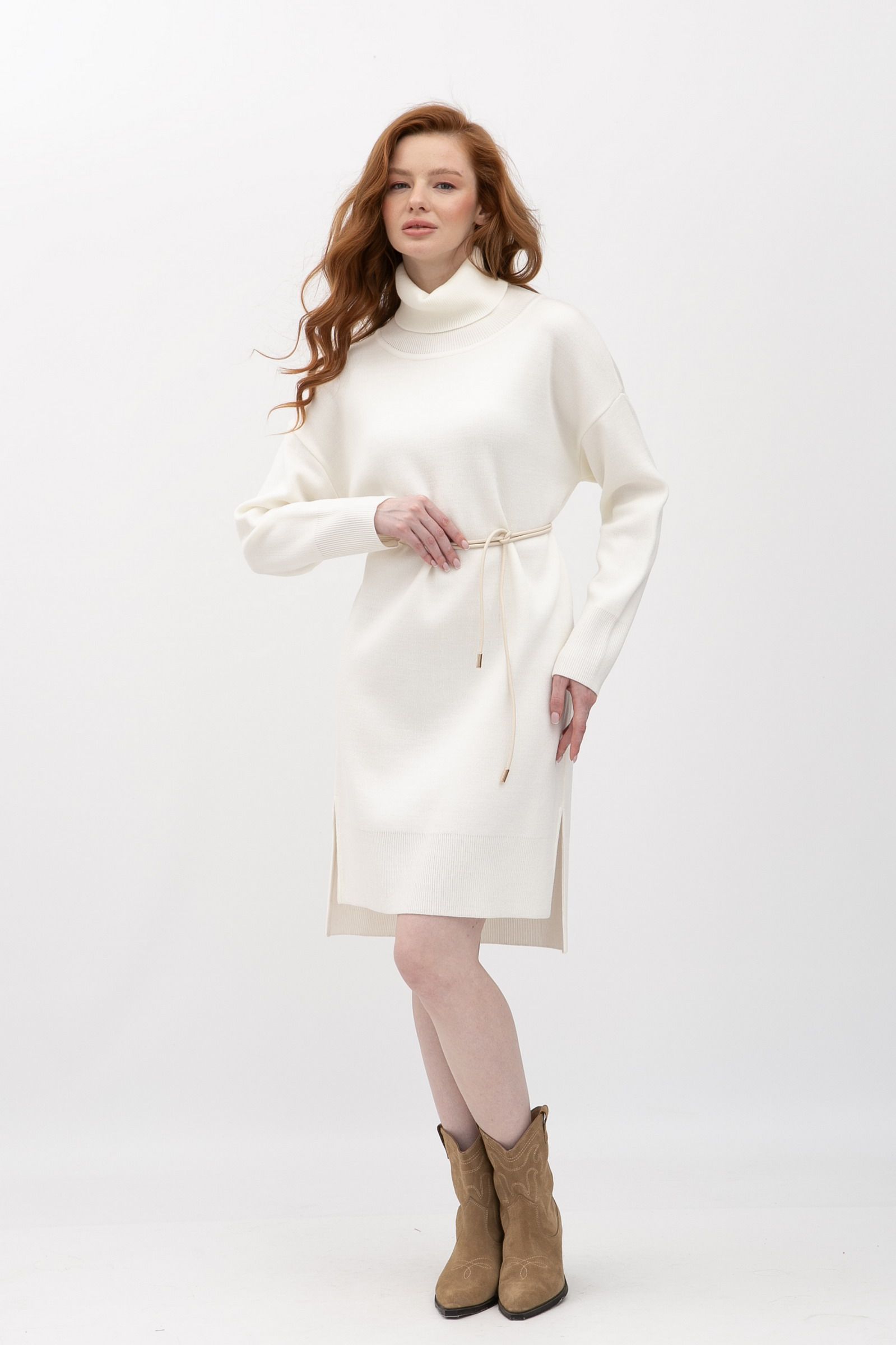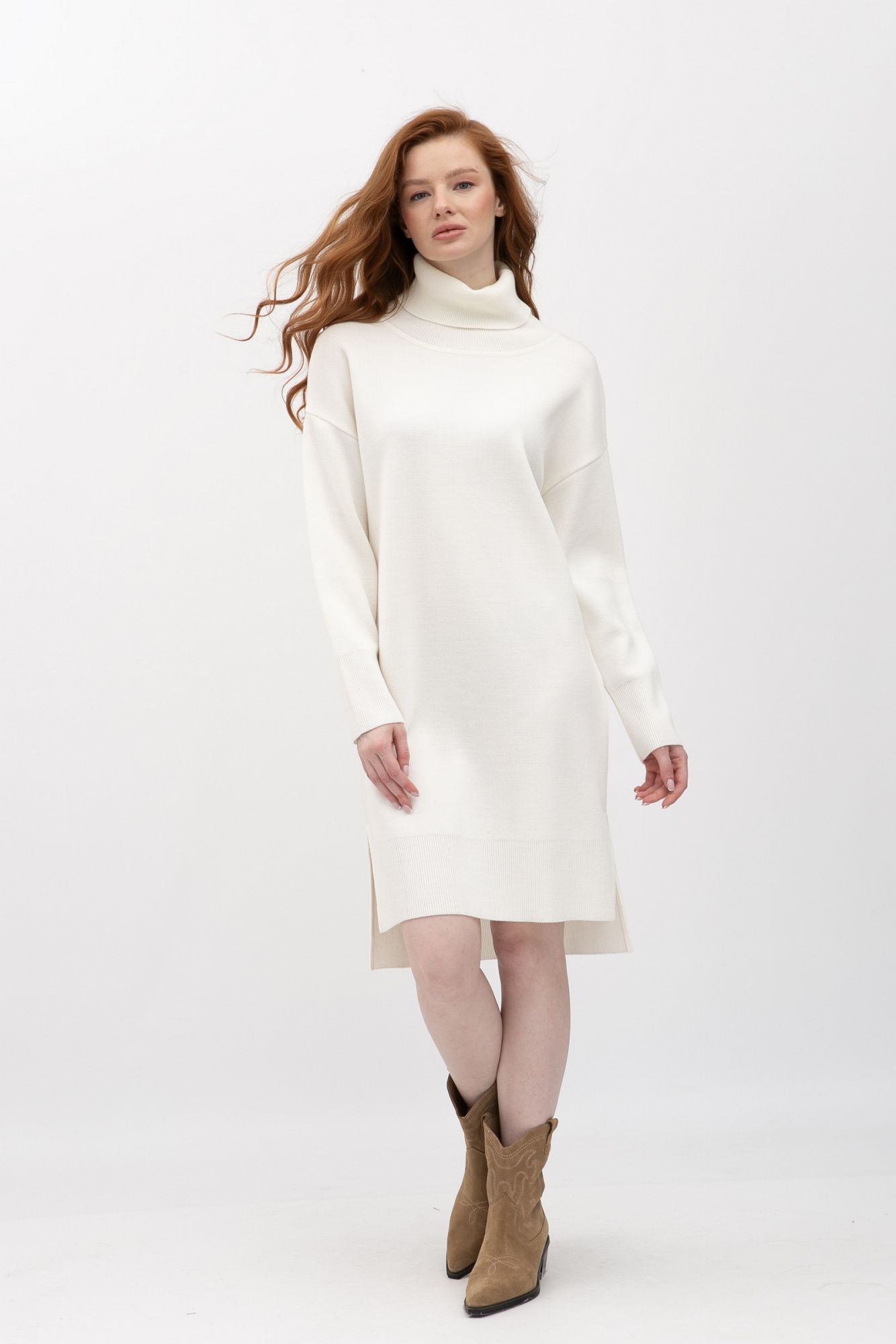 Тепла сукня -гольф довжини міді молочного кольору 25214000 - для будь-якої події та сезону