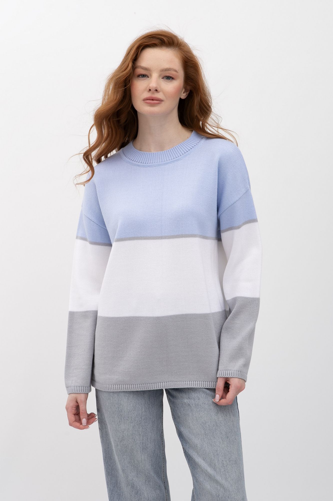 Базовий джемпер вільного крою блакитного кольору 25207901 - вишуканість і комфорт для кожної