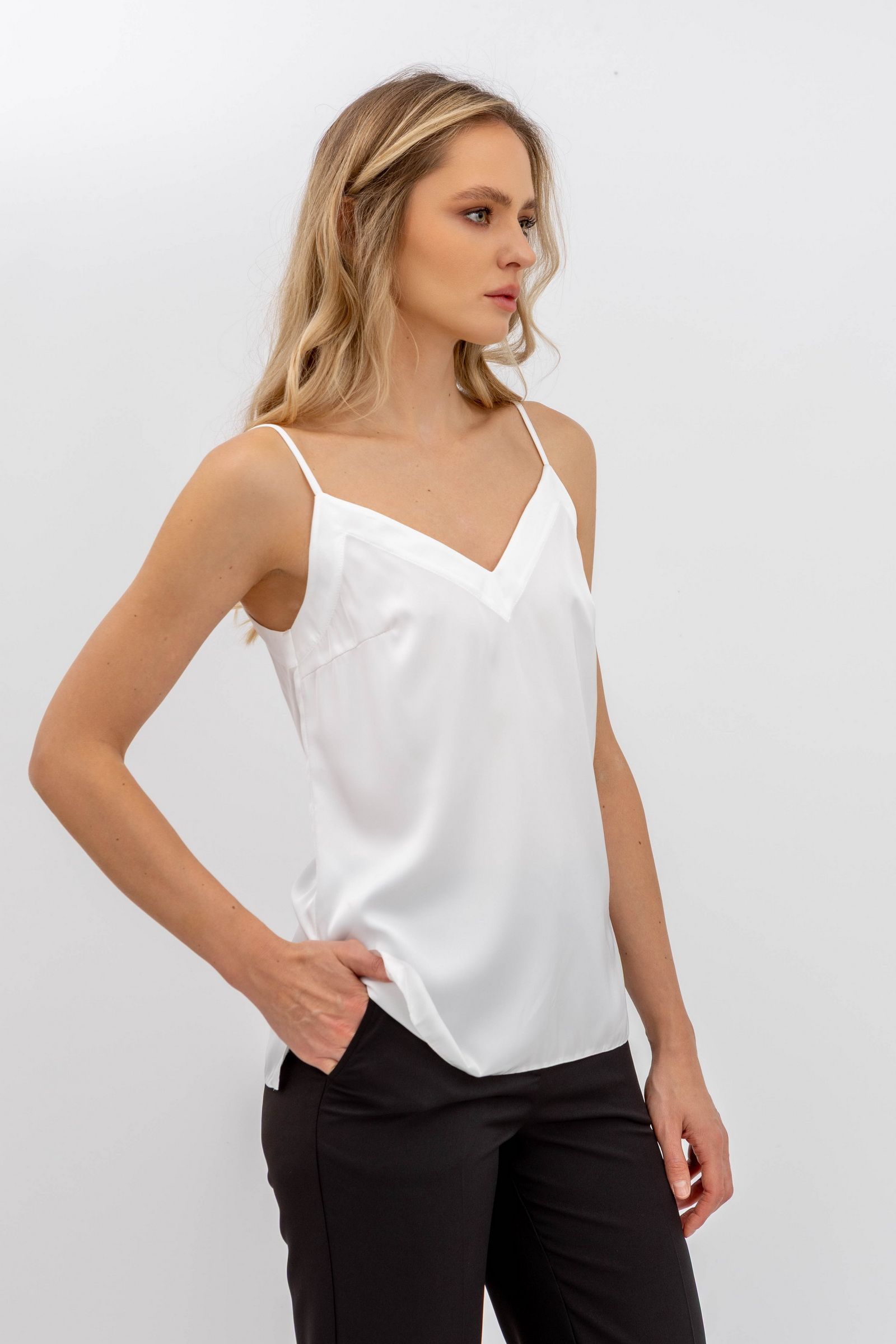 Молочна шовкова майка на бретелях Маркус 5010 - для будь-якої події та сезону