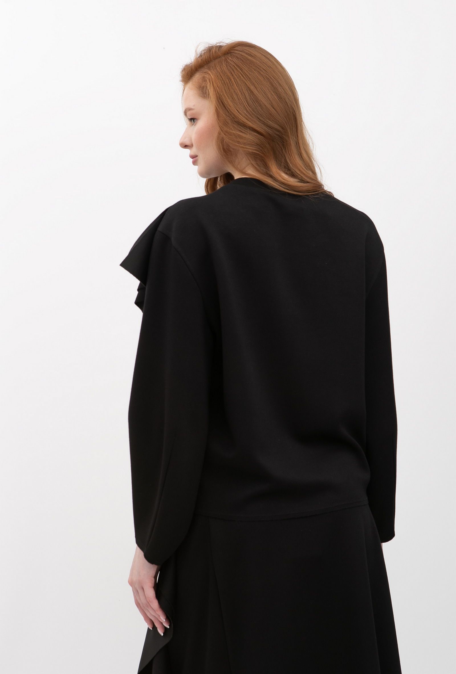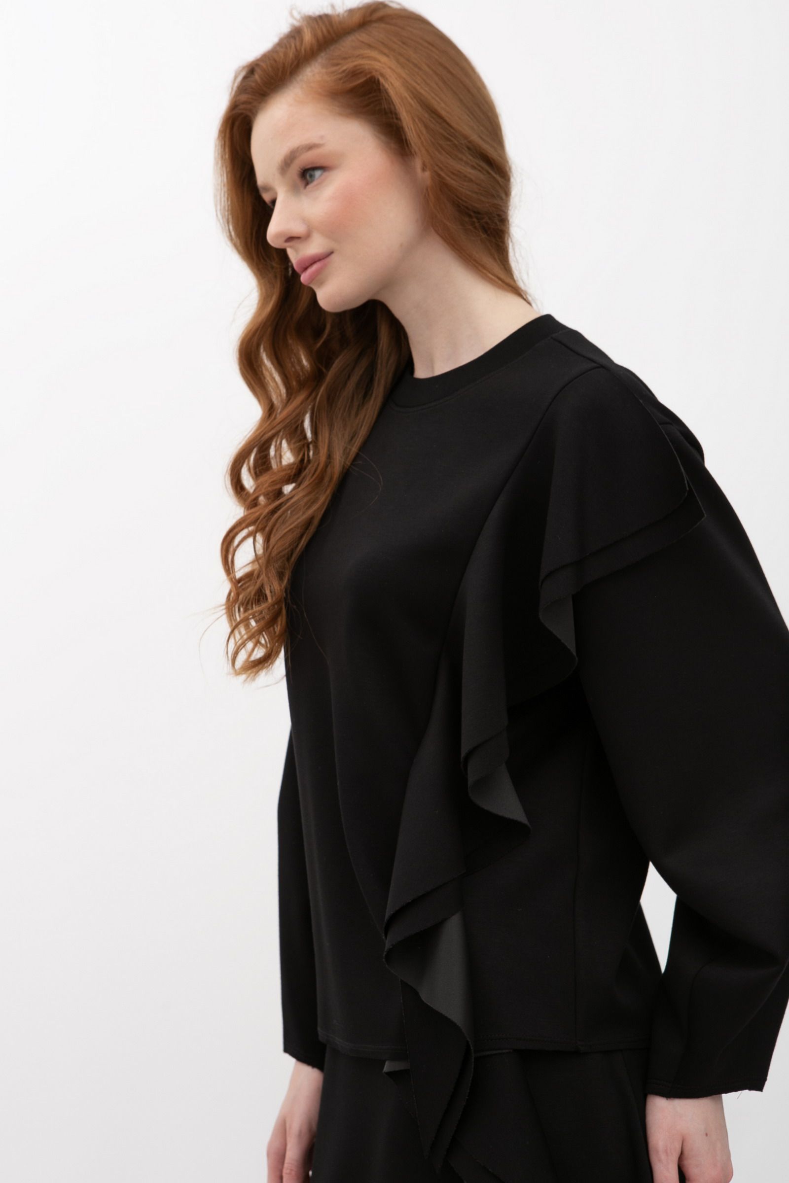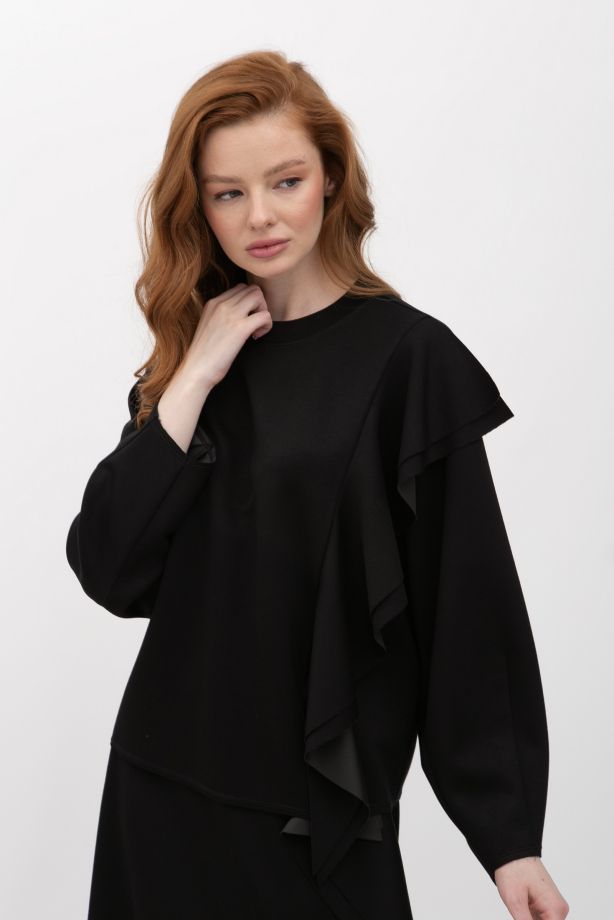 Трикотажний світшот з воланами чорного кольору Рінель 01 - з високоякісних матеріалів
